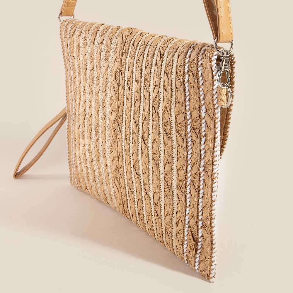The perfect way to elevate any outfit, this clutch bag encompasses a grand white cord braided accent paper envelope design. This item is perfect for anyone who loves to accessorize and add some personality to their outfits. Available in IV, TA. This item is sold in packs of 1.