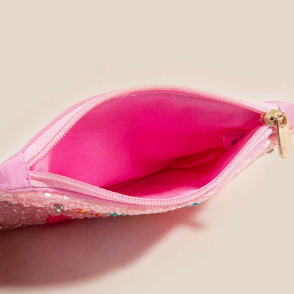 - This coin purse is made with Beaded/Polyester.