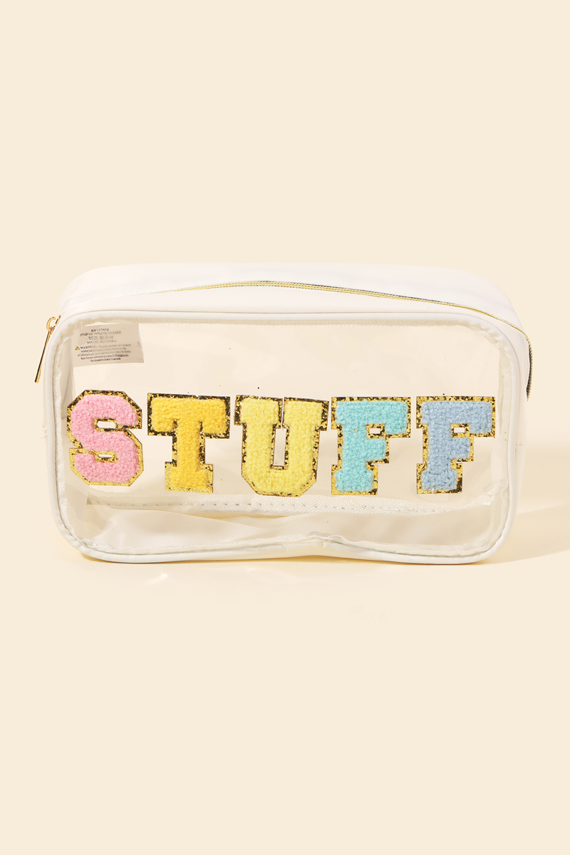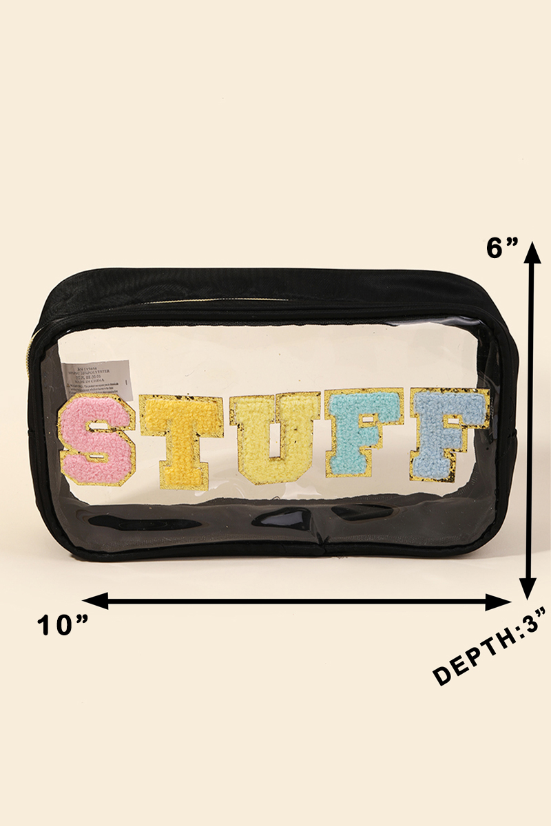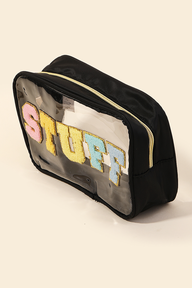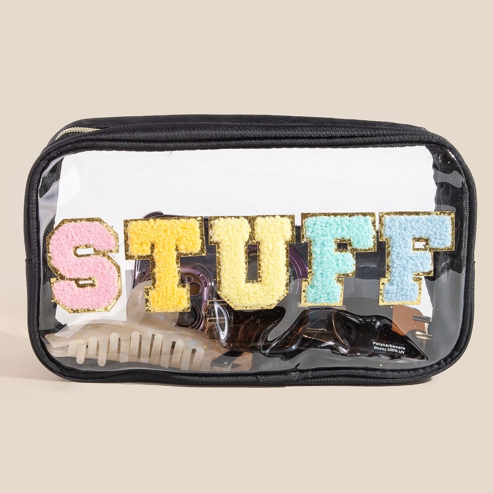 • A versatile and stylish addition to any wardrobe, this incorporates a flawless see through stuff print cosmetic bag design. Achieve a perfect blend of style and sophistication with this versatile , a fashion-forward choice for any occasion. Available in BK, IV, MI and PK. This item is sold in packs of 1.