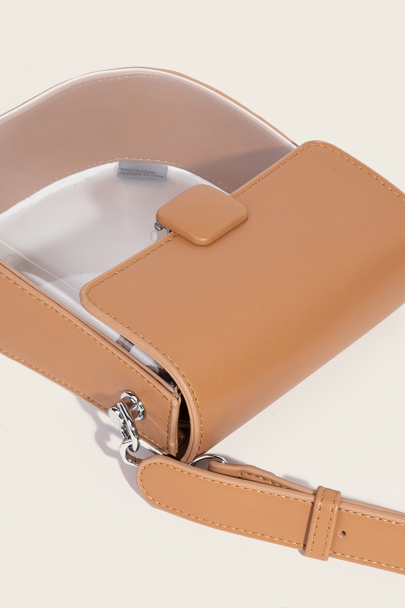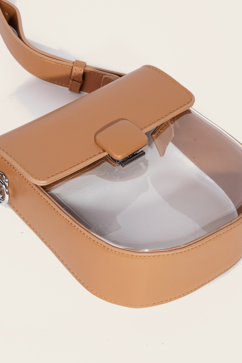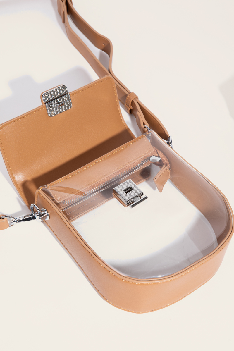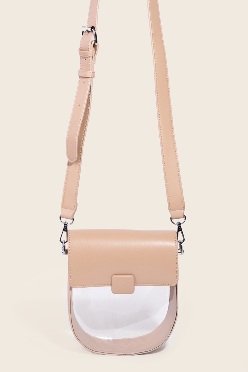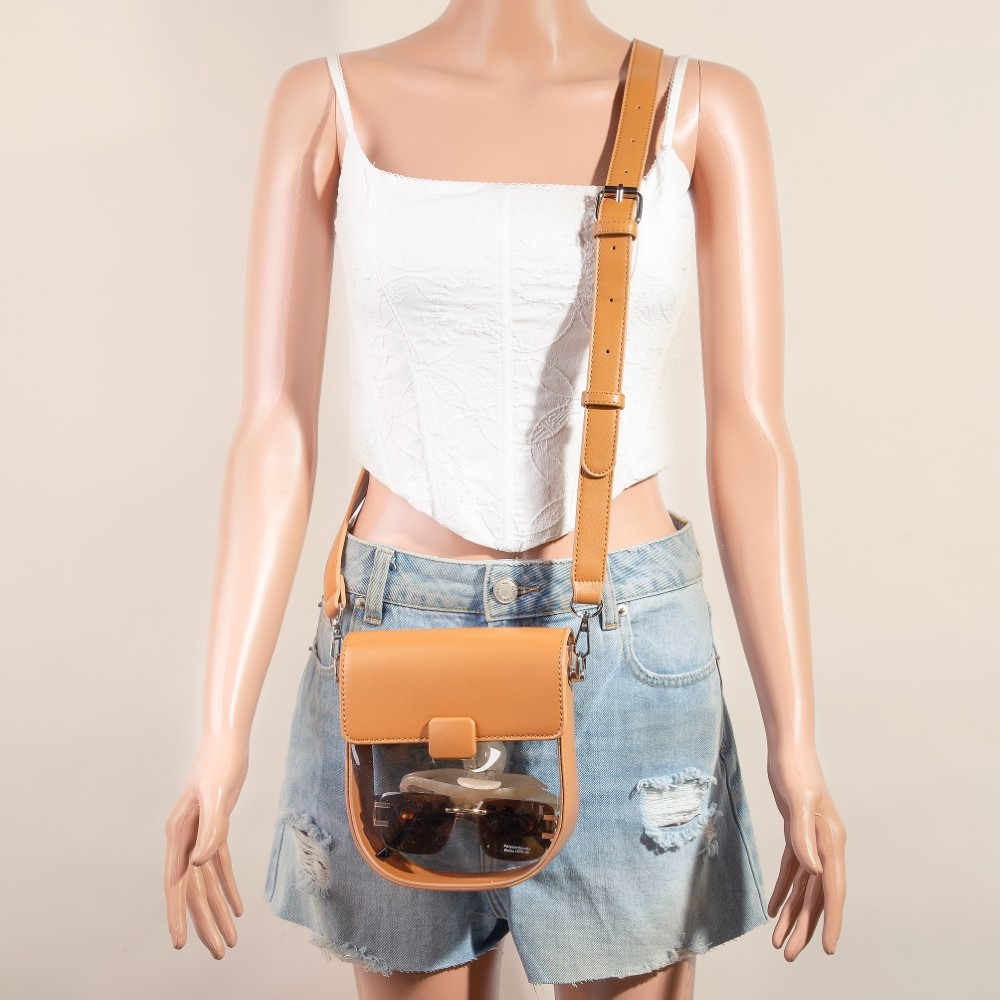 • Add a touch of luxury to any outfit, this crossbody bag includes a stunning faux leather clear see through design. Elevate your fashion statement with this versatile crossbody bag, adding a touch of glamour to your everyday look. Available in BLK, CREAM, TAN, TAU. This item is sold in packs of 1.