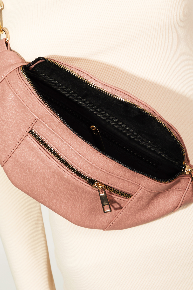 A versatile and stylish addition to any wardrobe, this bag boasts a magnificent faux leather fanny pack design. Elevate your everyday style with this versatile accessory, a simple yet impactful addition to your fashion repertoire. Available in BK, IV, KA and MV. This item is sold in packs of 1.