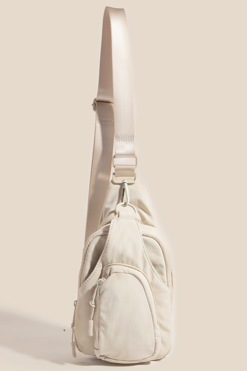 A must-have for any fashion-forward individual, this crossbody bag incorporates a flawless nylon multi pocket sling bag design. Take your style to the next level by incorporating this versatile crossbody bag, a key element in achieving a polished look. Available in BEI, BLK, CRM, MOSS. This item is sold in packs of 1.