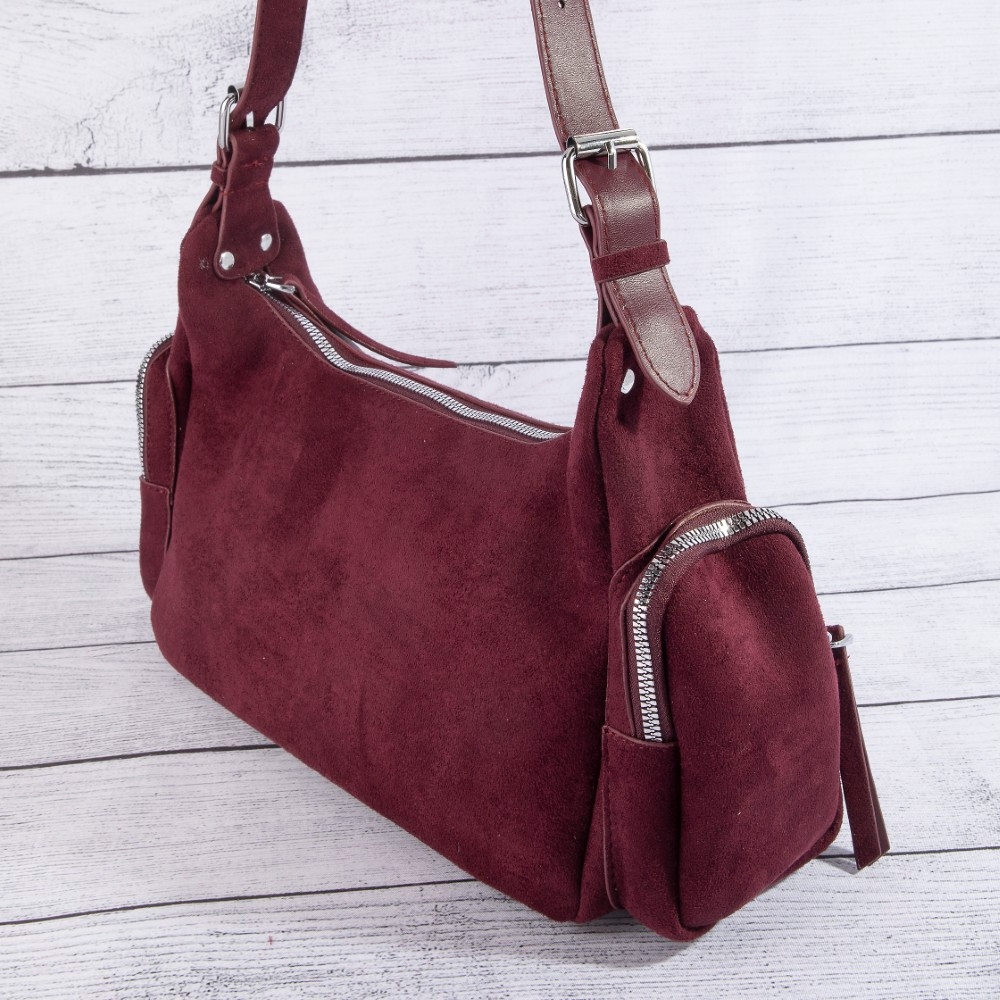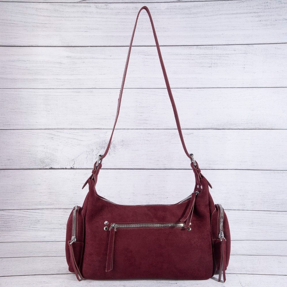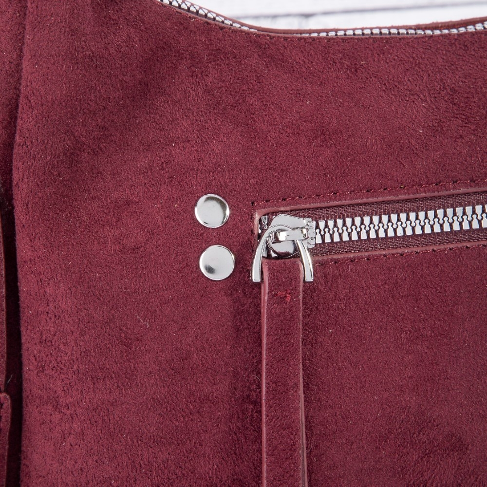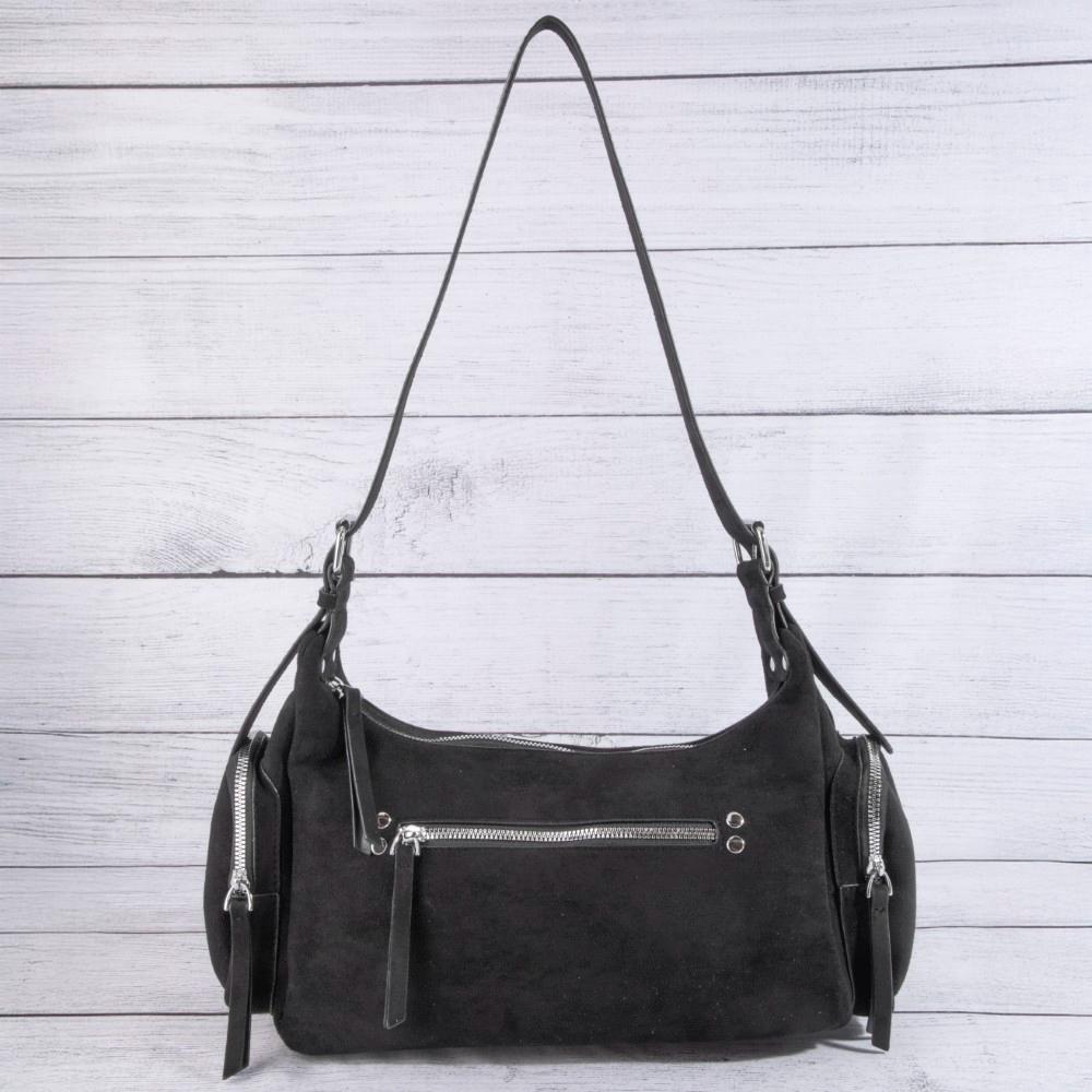 Ball Studded Trim Suede Hobo Shoulder Bags