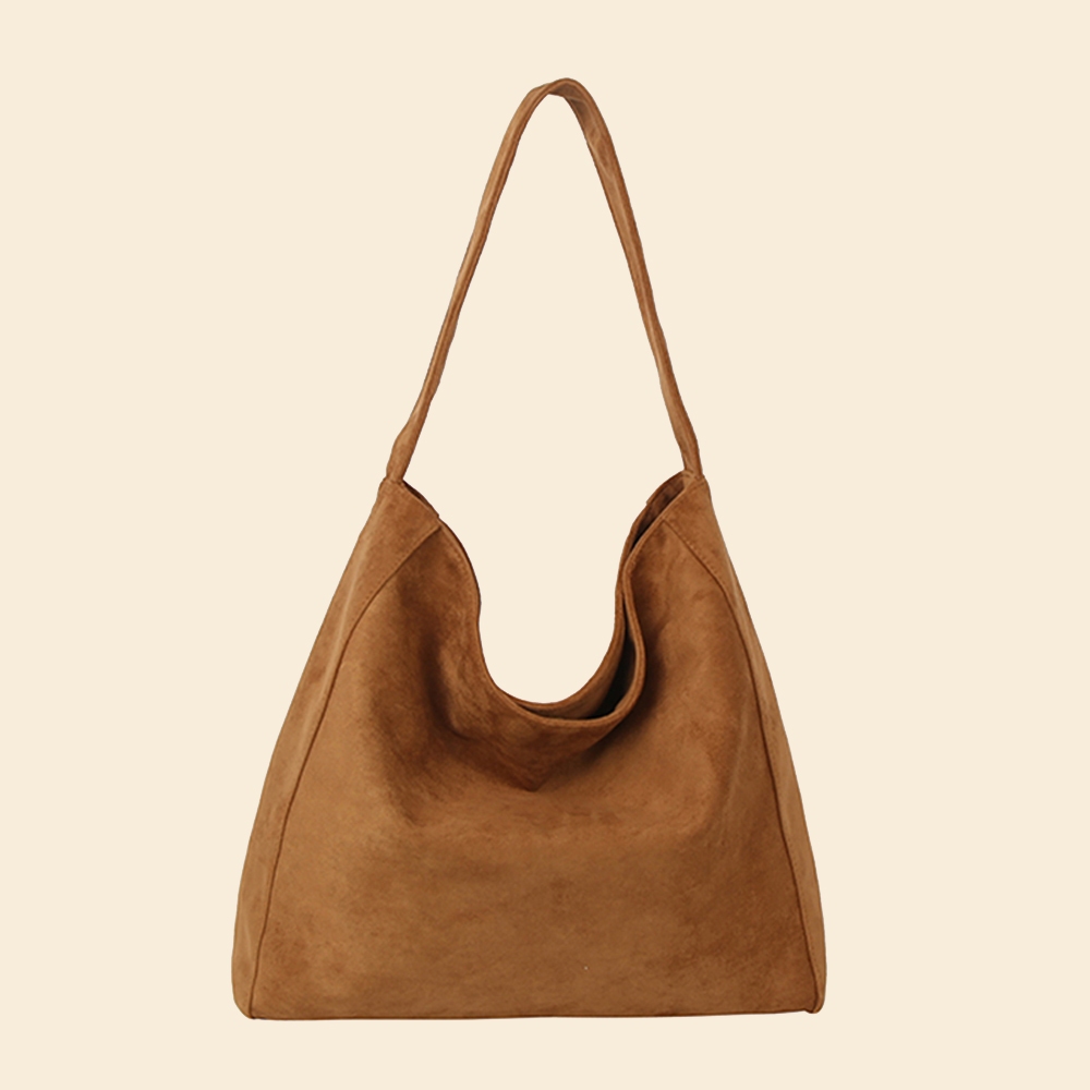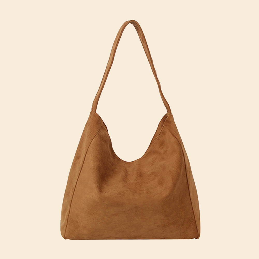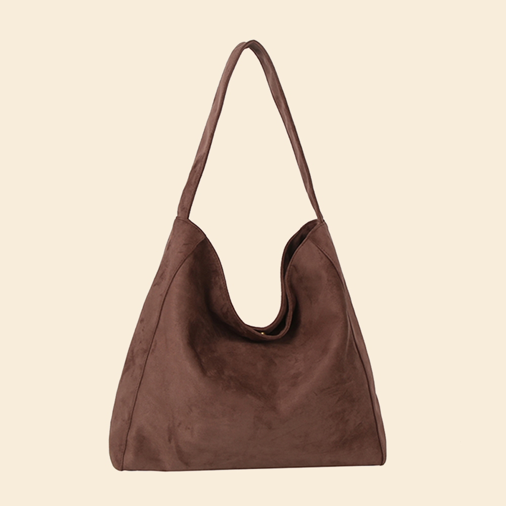 This shoulder bag is made with 100% Faux Suede.