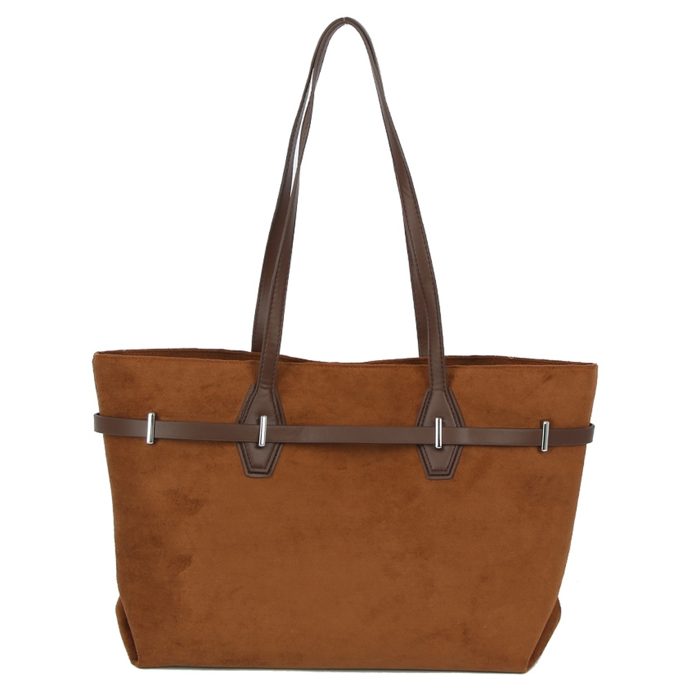 • A must-have addition to any tote bag collection, this tote bag evokes a captivating faux suede belted tote shopper design. Infuse a hint of luxury into your daily attire with this versatile tote bag, a must-have for those who appreciate timeless elegance. Available in BK, BR, CF, ST. This item is sold in packs of 1.