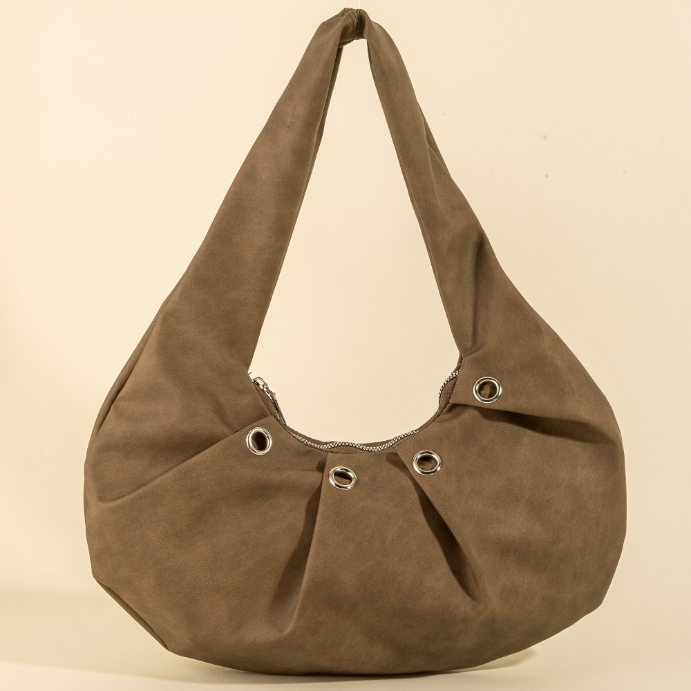 Ball Studded Trim Suede Hobo Shoulder Bags