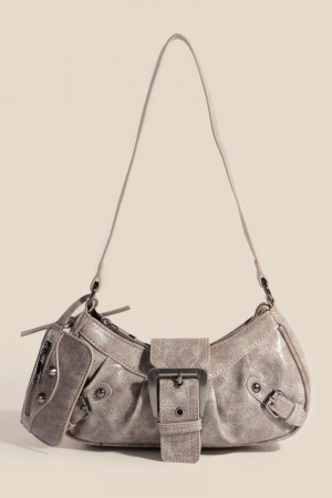 Buckle Accent Suede Hand Bag