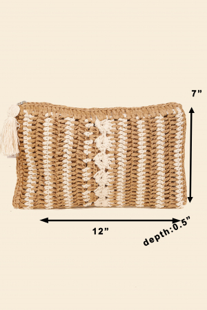 Tassel Zipper Straw Knit Cosmetic Bag