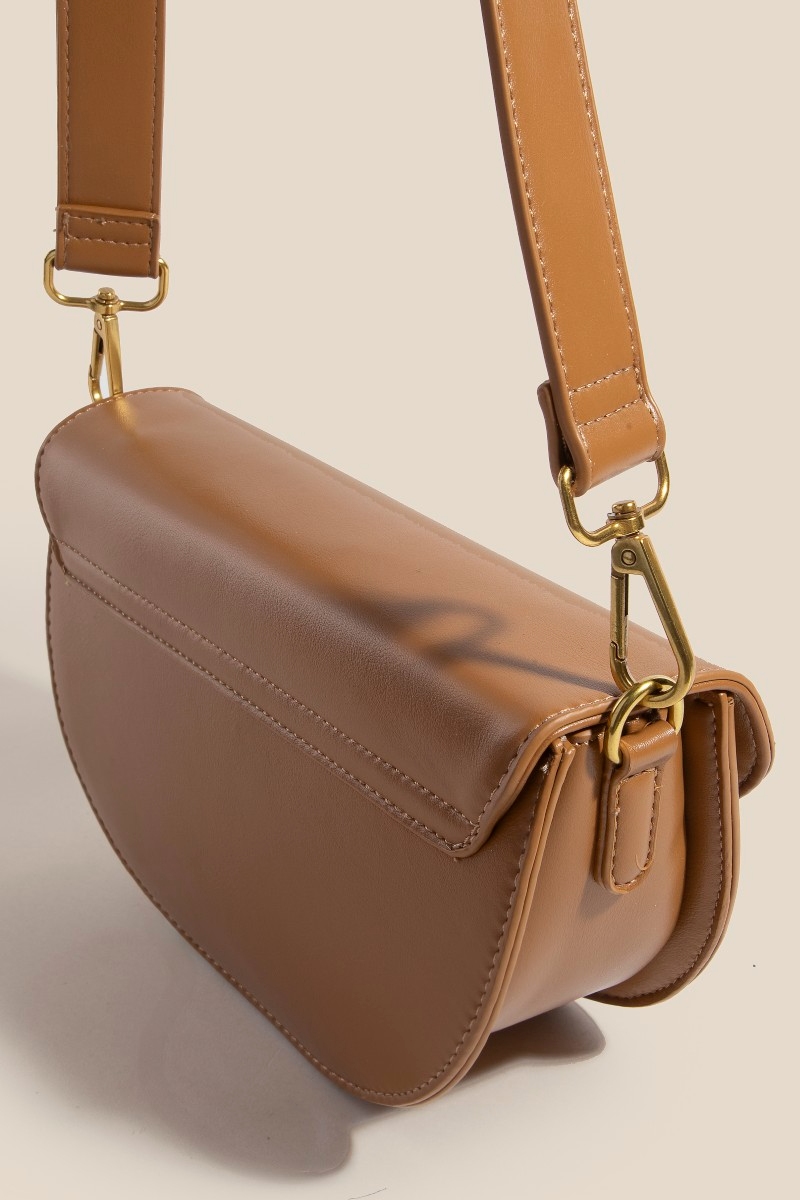 - The perfect way to add some sparkle to your outfit, this hand bag possesses a fine buckle closure crescent faux leather design. Elevate your fashion IQ with this versatile hand bag, designed to seamlessly integrate into any style profile. Available in BK, BO, TAN. This item is sold in packs of 1.