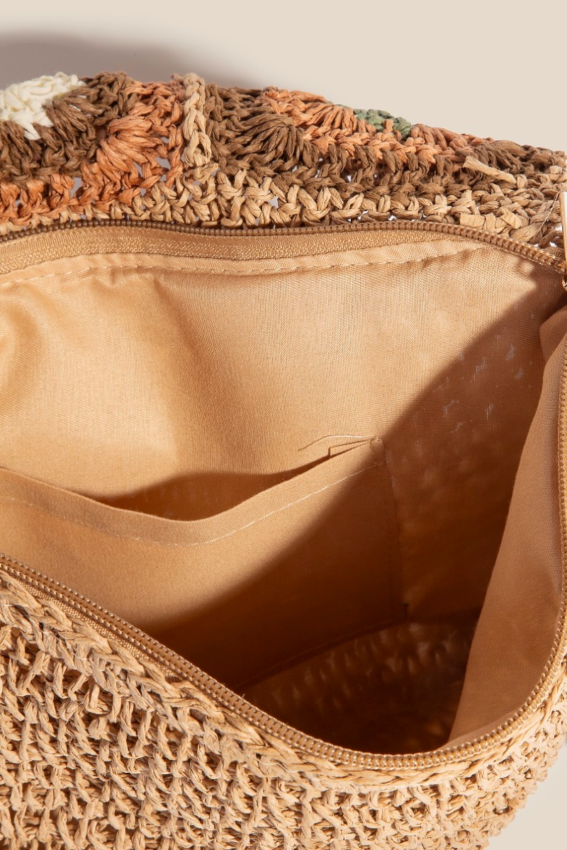 Multi Tone Straw Woven Half Moon Round Handle Bag