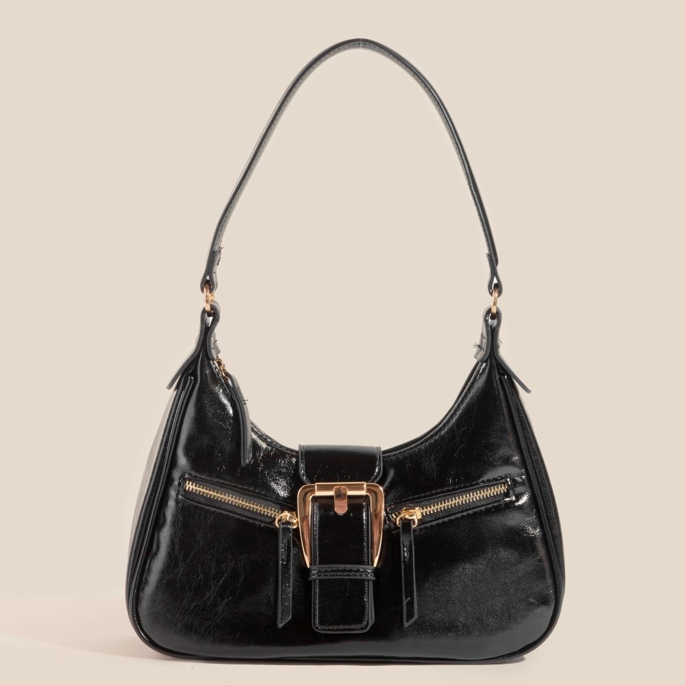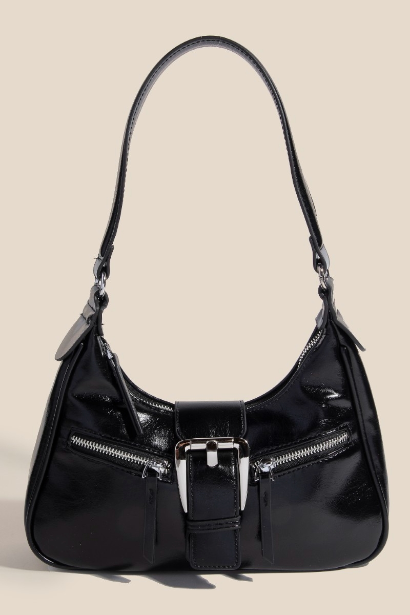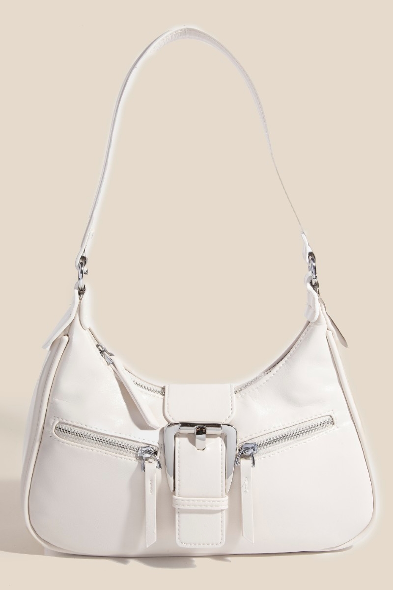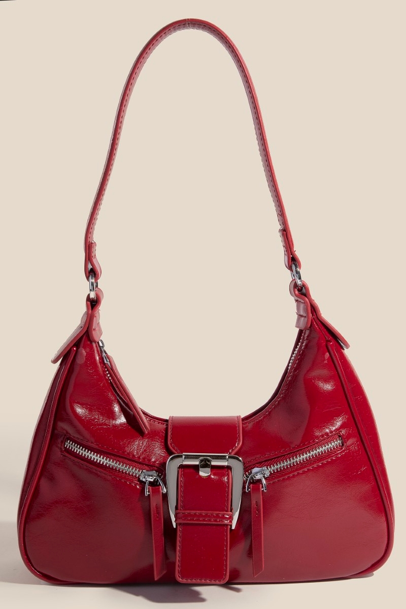 • This piece is the perfect way to add some glamour to your look, this hand bag flaunts a luxurious large buckle triple zipper design. Elevate your outfit with this stylish hand bag that's perfect for any occasion. Available in SBK, IV, KA, RD. This item is sold in packs of 1.