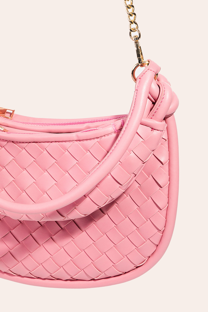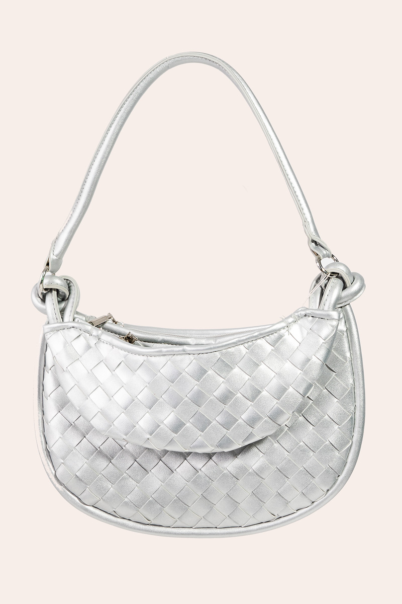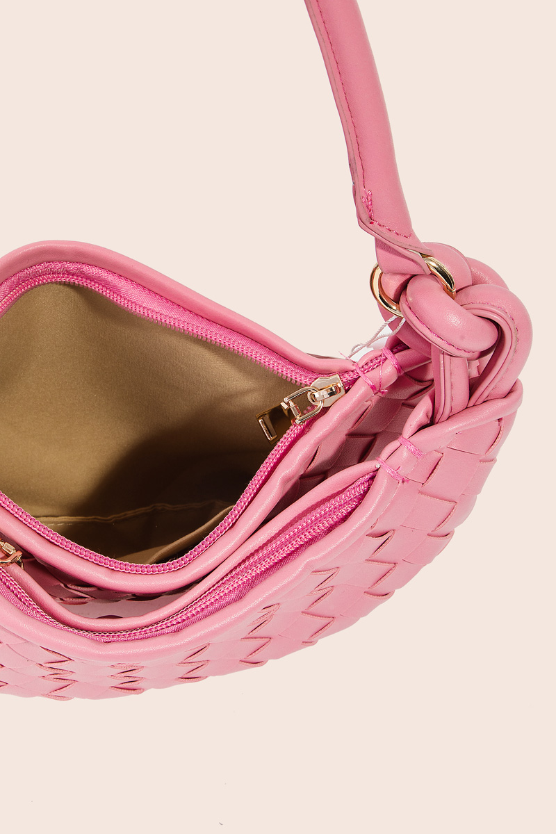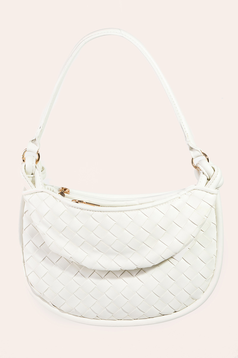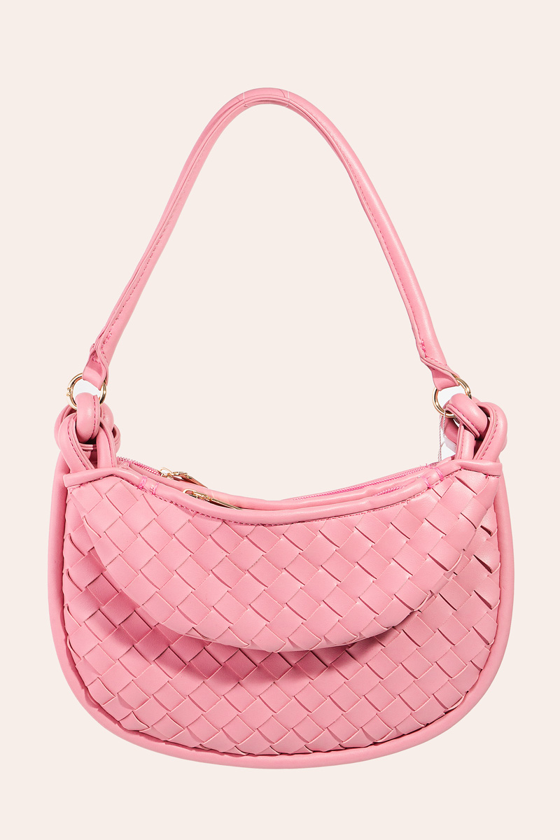 • The perfect way to showcase your unique style, this bag emanates an elegant faux leather basket weave half moon design. Perfect for adding some texture and dimension to any outfit, this bag is a must-have. Available in BK, IV, PK and S. This item is sold in packs of 1.