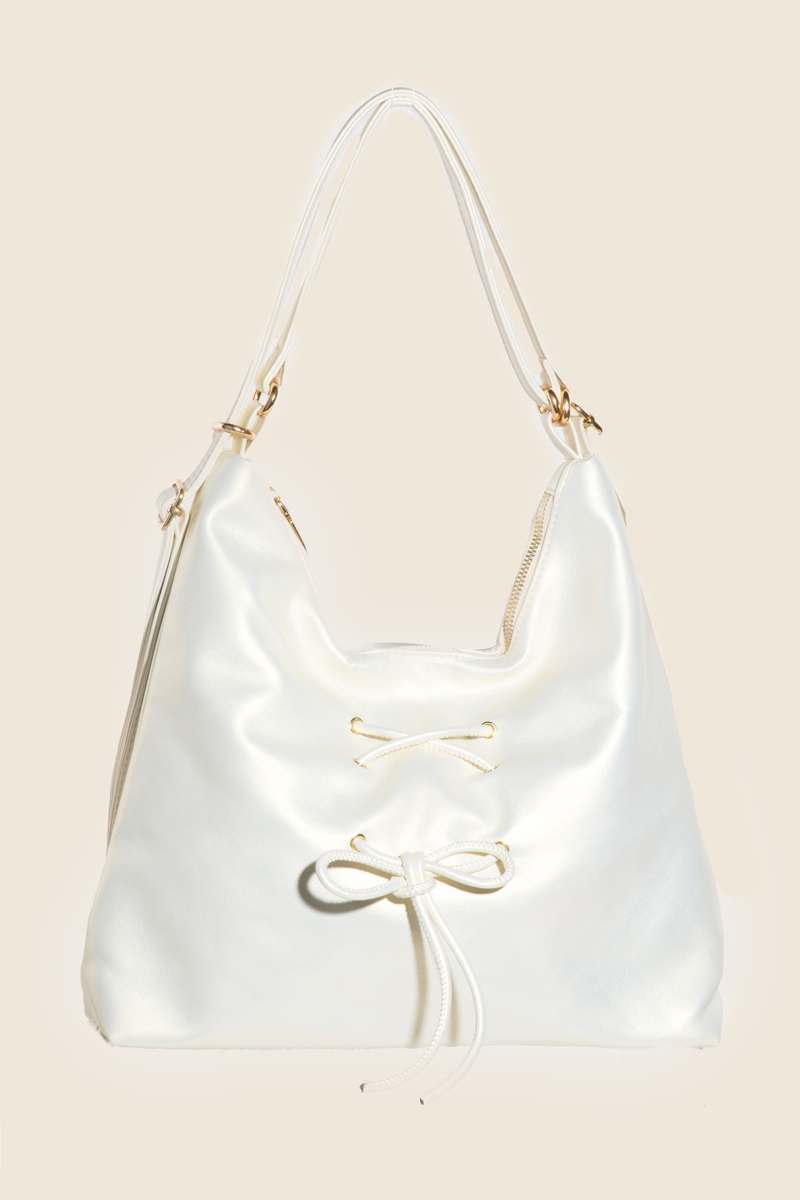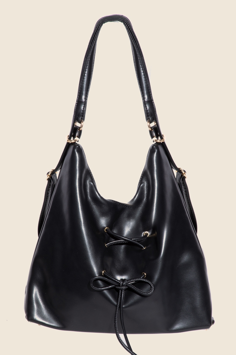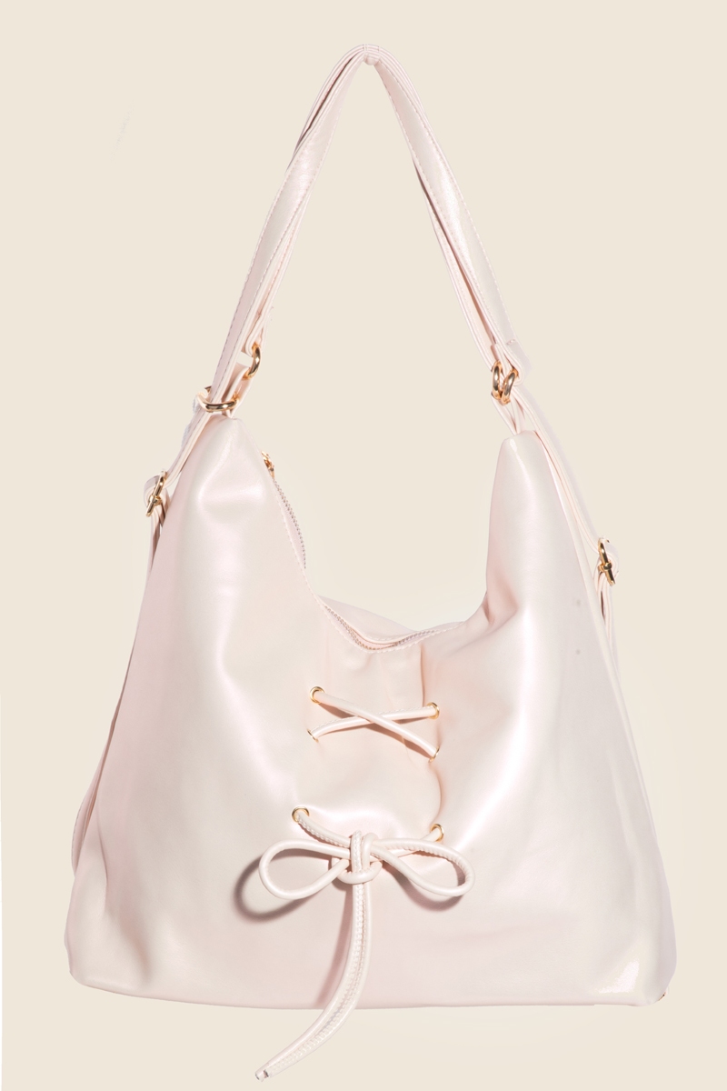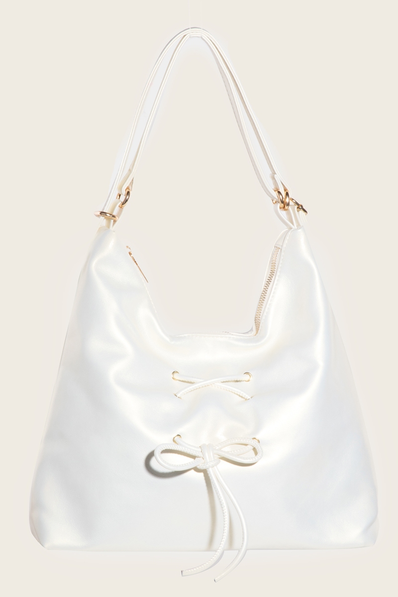 • A piece that will never go out of style, this hand bag flaunts a luxurious faux leather string bow know shoulder bag design. Infuse elegance into your daily wardrobe with the versatile charm of this must-have hand bag. Available in BK, IV, PK and S. This item is sold in packs of 1.