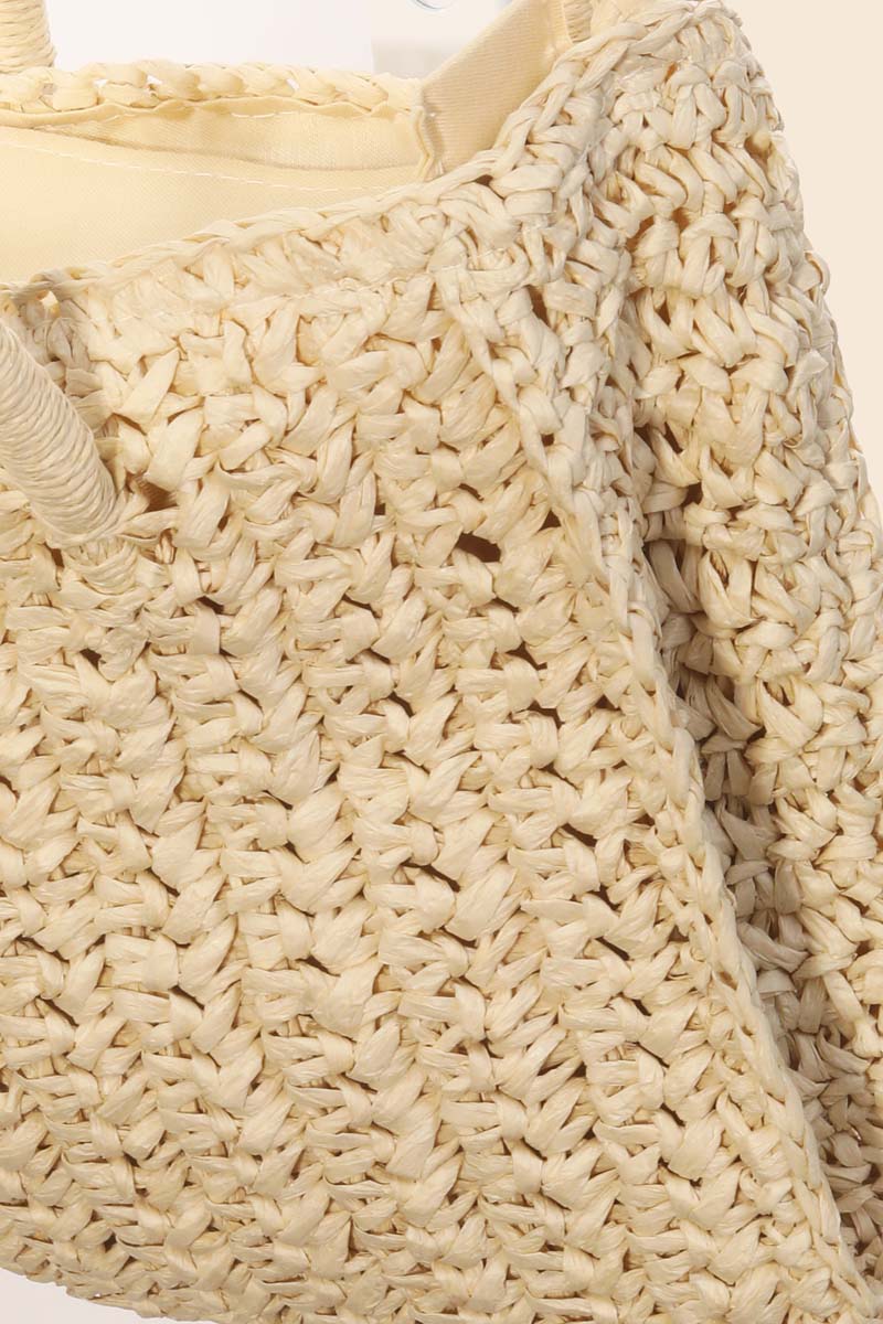 Multi Tone Straw Woven Half Moon Round Handle Bag
