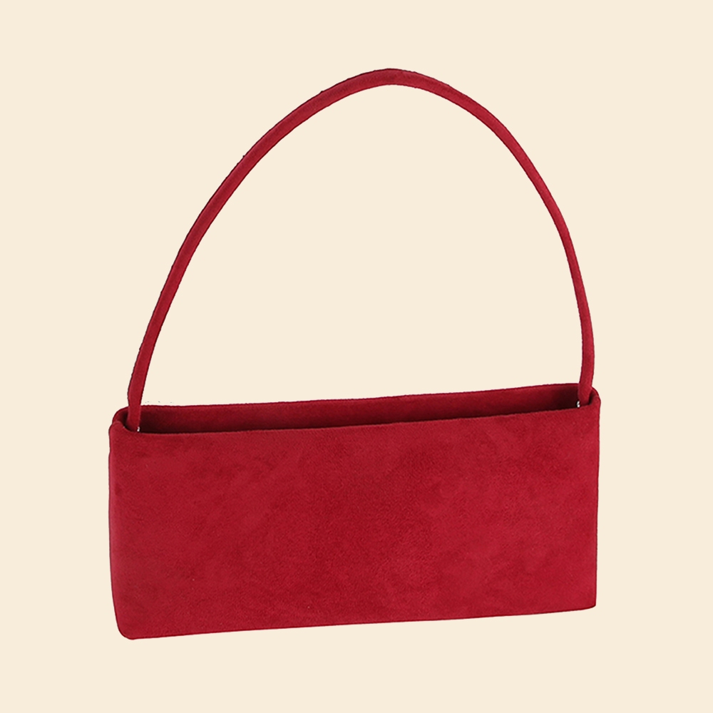 • Elevate your style with something unique and daring, this hand bag showcases an alluring rectangle suede shoulder bag design. This hand bag is the perfect way to add a touch of elegance to any outfit. Available in BD, BK, CF, TN. This item is sold in packs of 1.