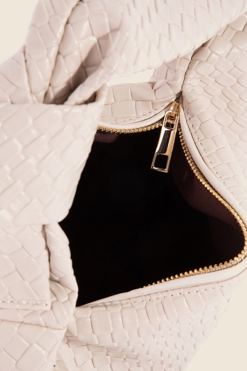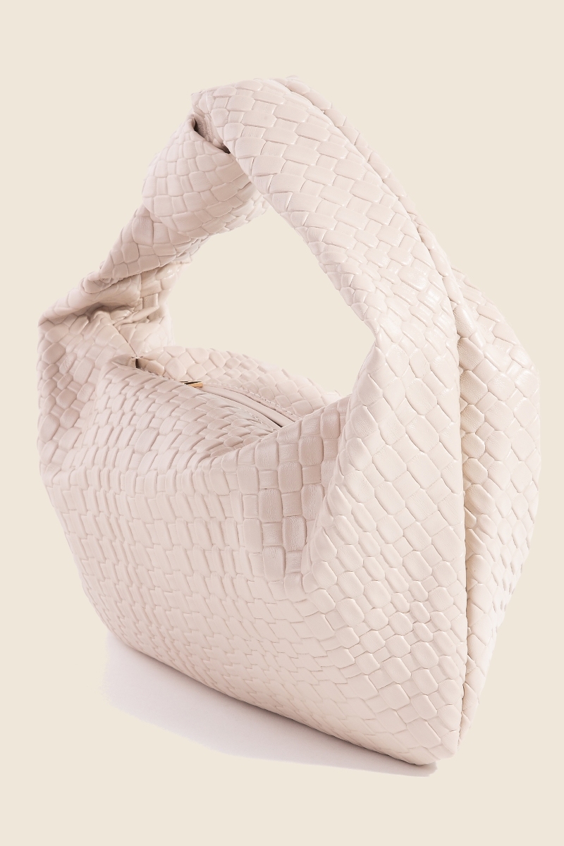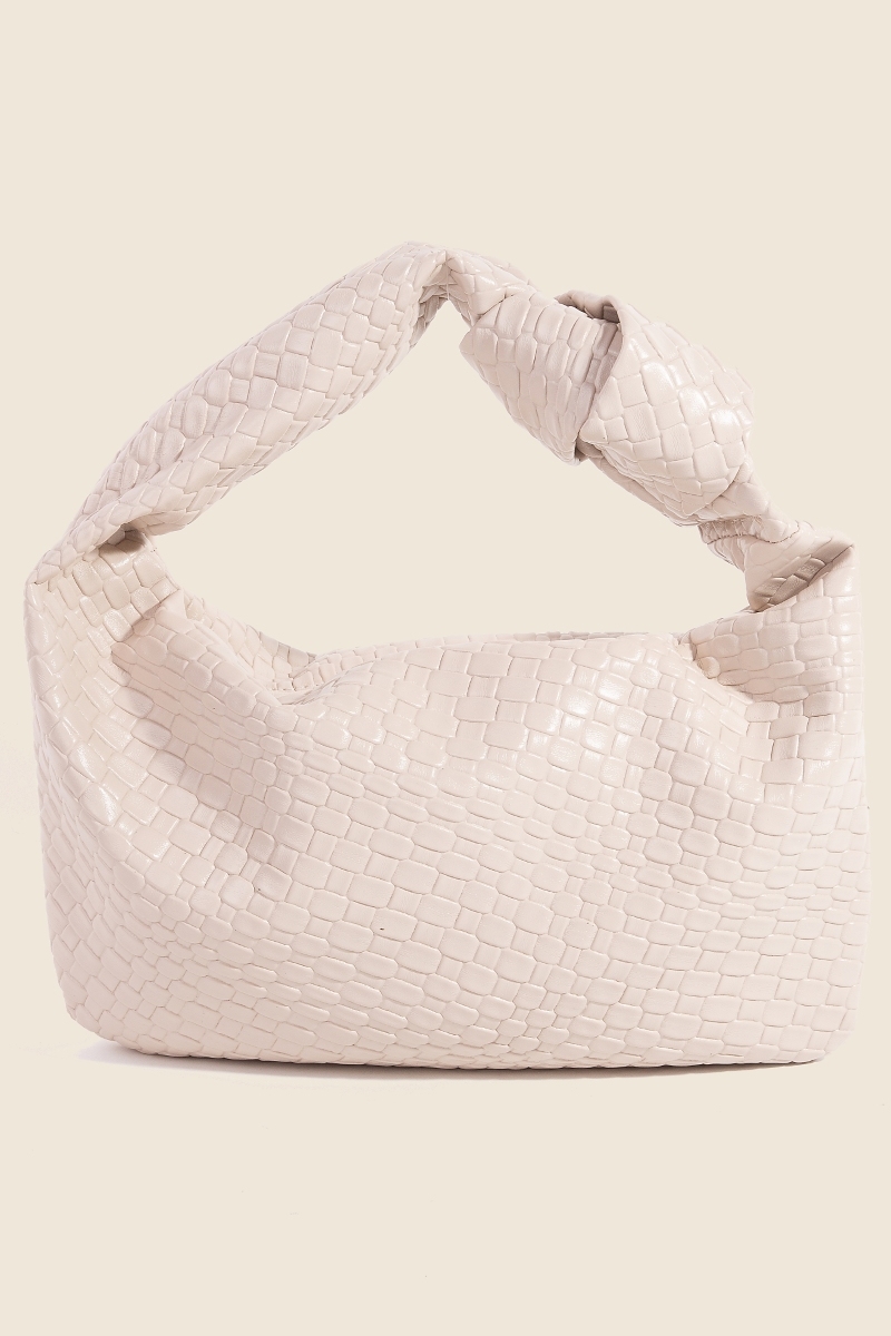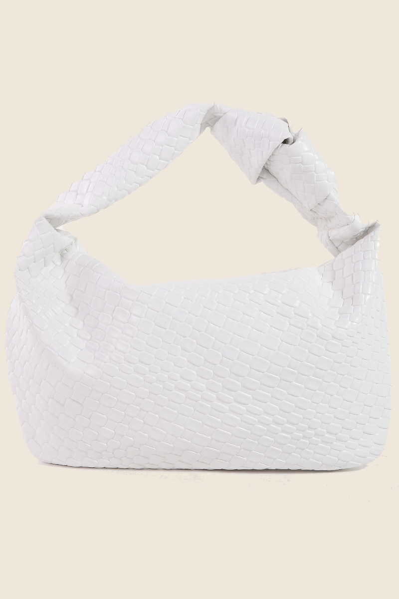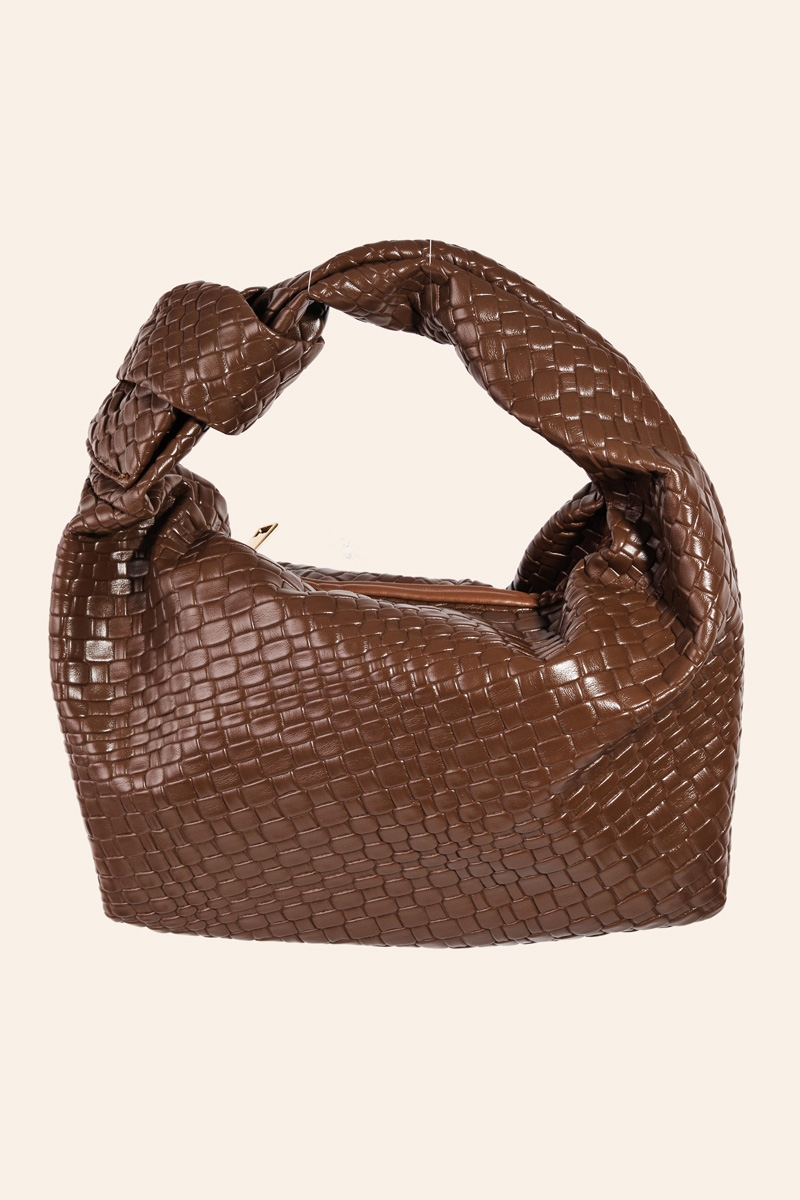 - This piece is both elegant and versatile, this hand bag incorporates a flawless weave pattern knotted handle design. Make a lasting impression with this versatile hand bag, a subtle yet impactful addition to your fashion repertoire. Available in BK, BR, DBR, LBR, TP and WH. This item is sold in packs of 1.