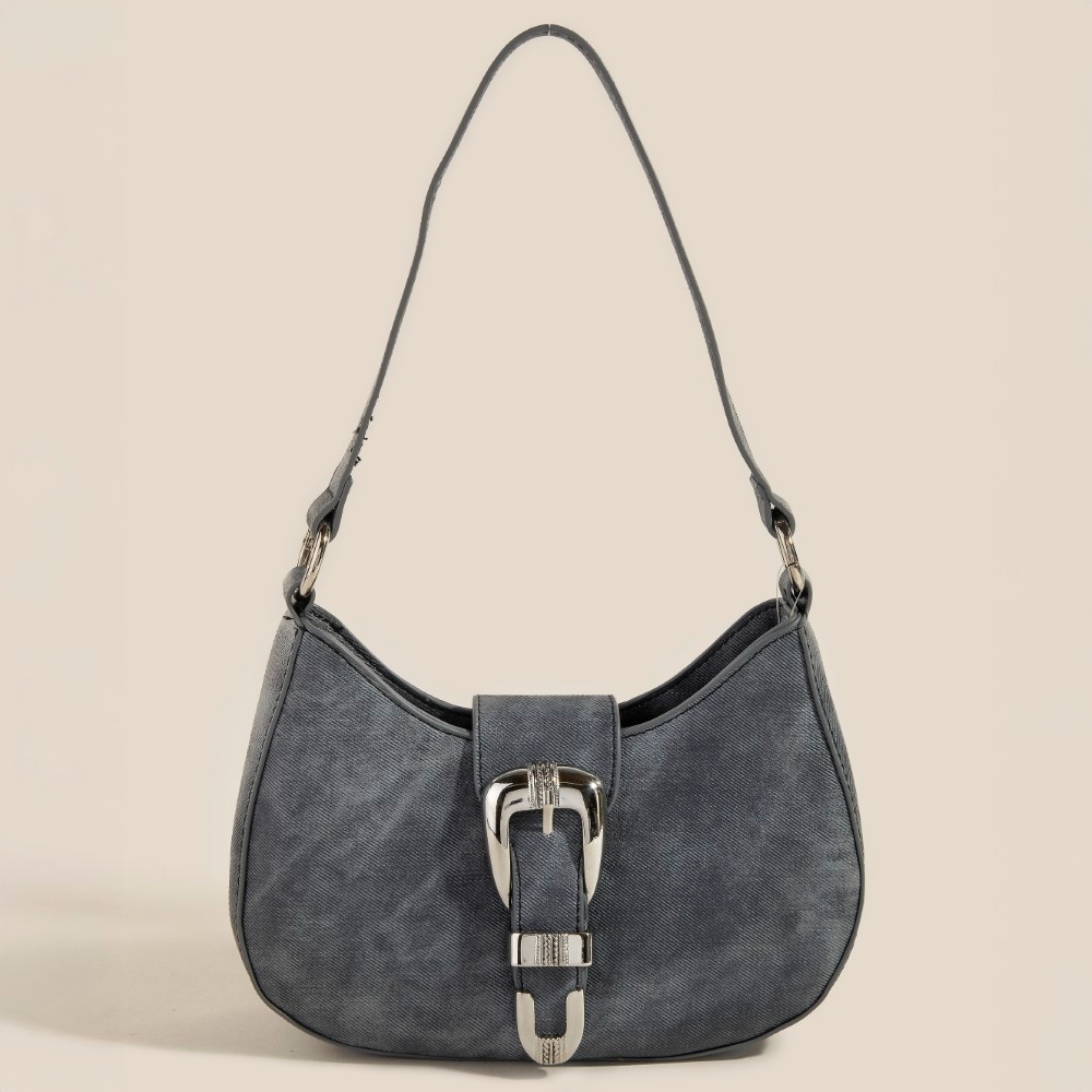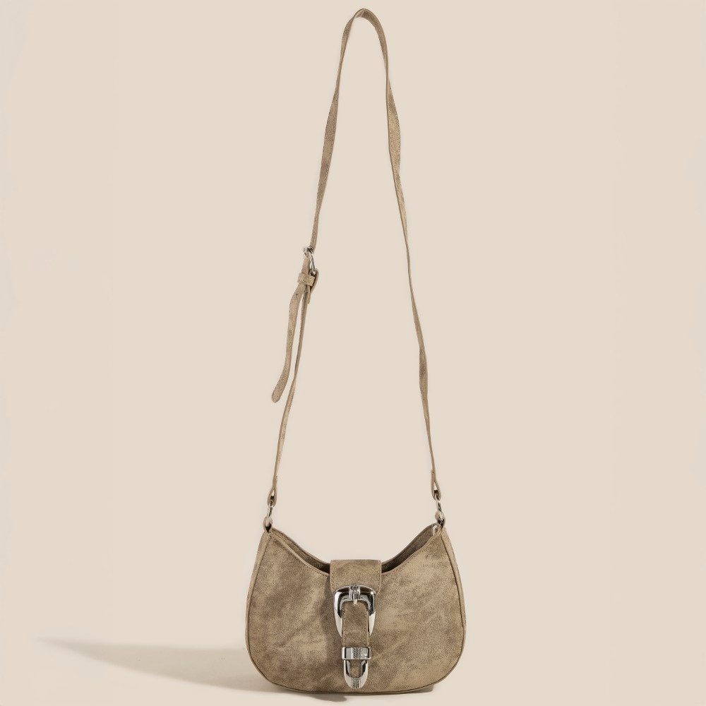 Half Moon Fringe Buckle Strap Hobo Bag