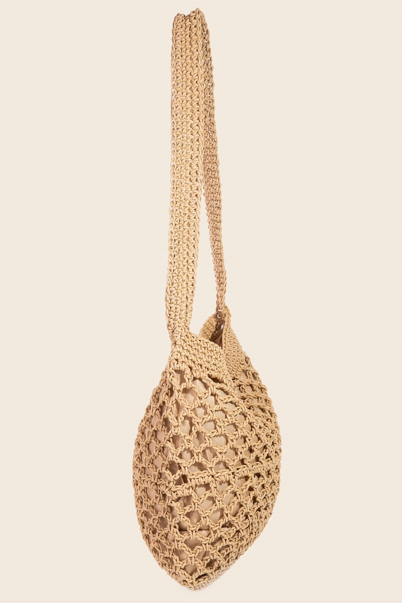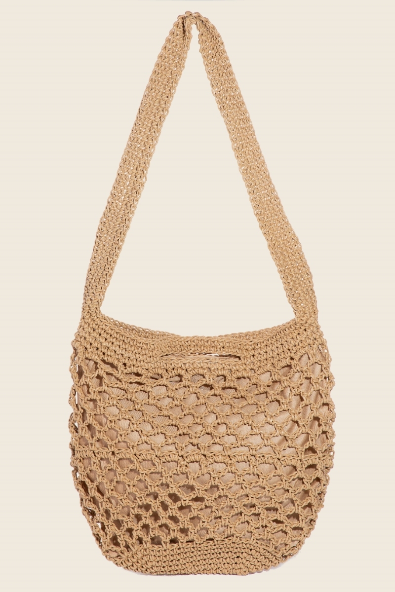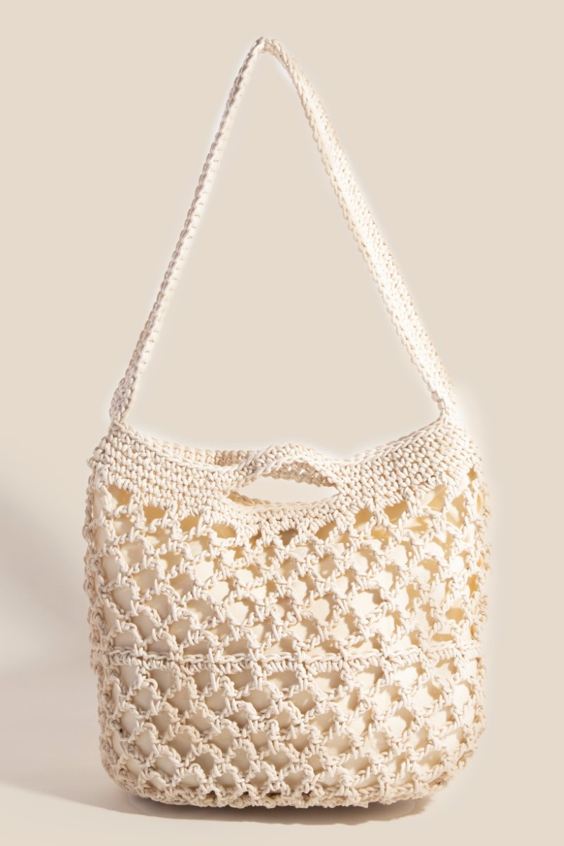 • Chic, sophisticated, and always in style, this tote bag incorporates a flawless crochet mesh hobo design. Infuse your ensemble with a touch of sophistication using this versatile tote bag, a game-changer in the world of fashion. Available in IV, KA. This item is sold in packs of 1.