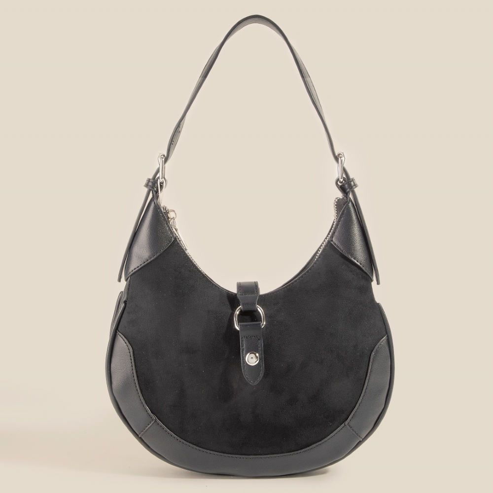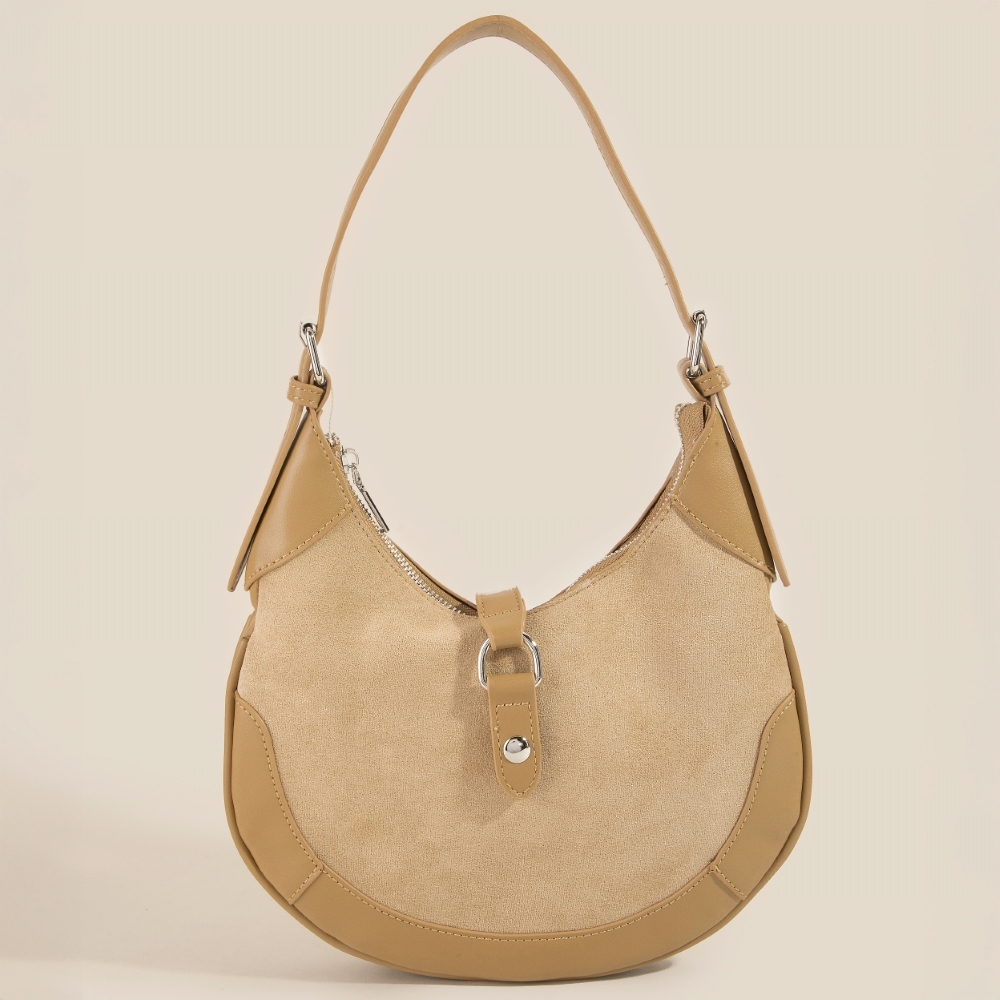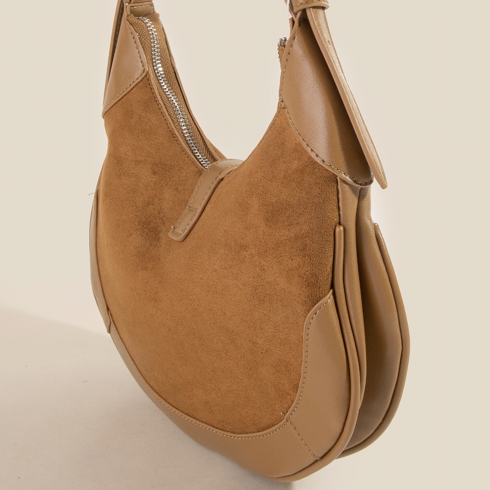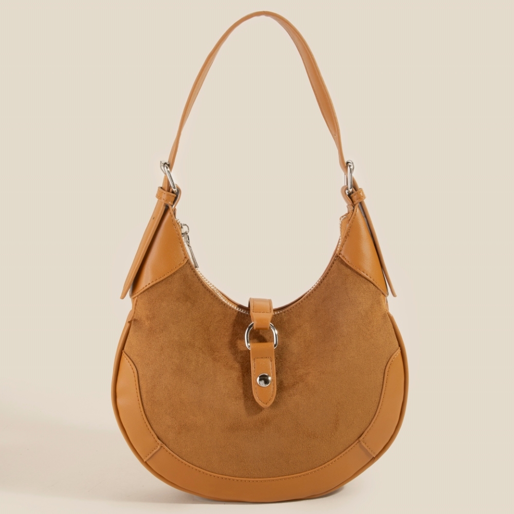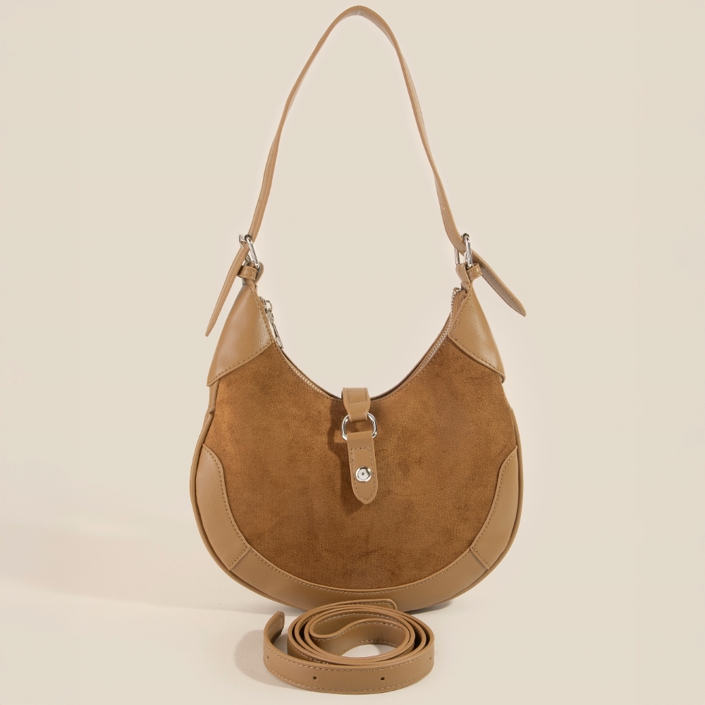 - Perfectly versatile and endlessly stylish, this hand bag comes with a special leather accent suede crescent design. This item is the perfect finishing touch to any outfit, adding a touch of glamour and sophistication. Available in BK, DBR, KA, LBR. This item is sold in packs of 1.