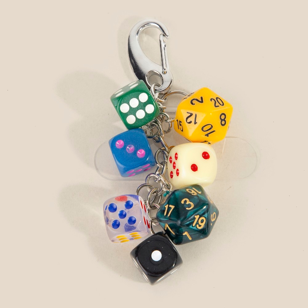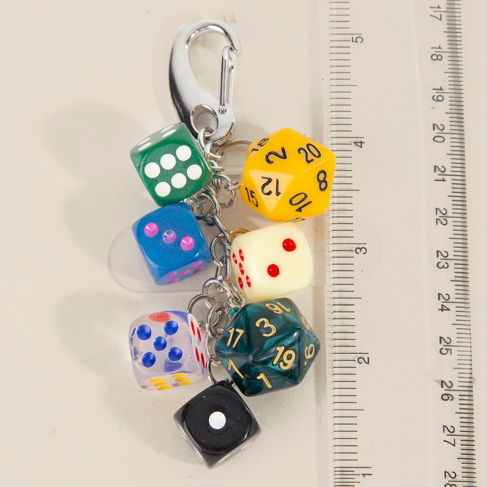Add a touch of elegance and glamour to your look, this bag charm incorporates a remarkable mixed seven dice chain design. This versatile bag charm adds a touch of elegance to any outfit. This item is sold in packs of 12.
