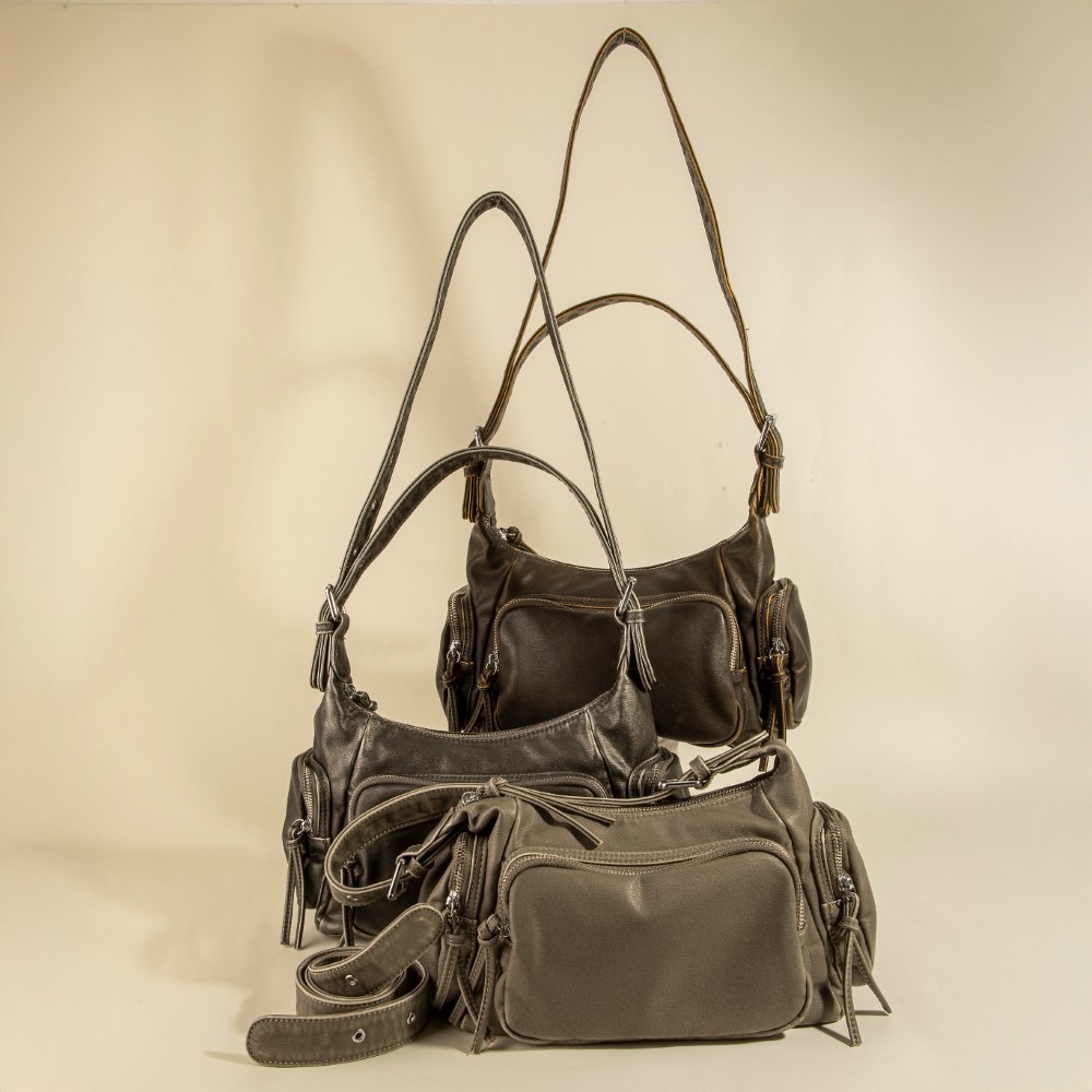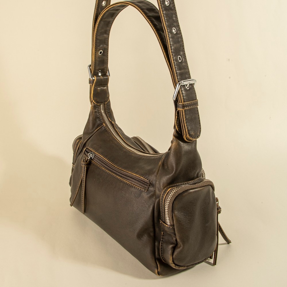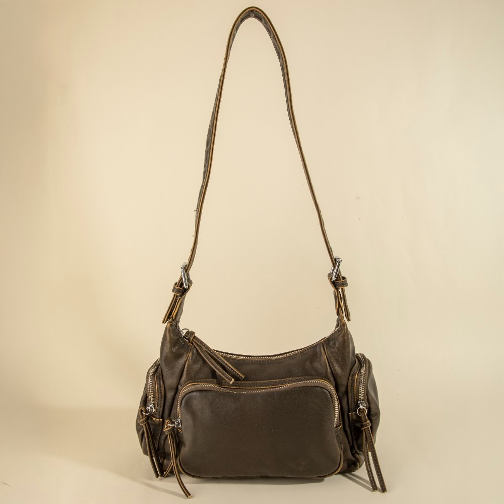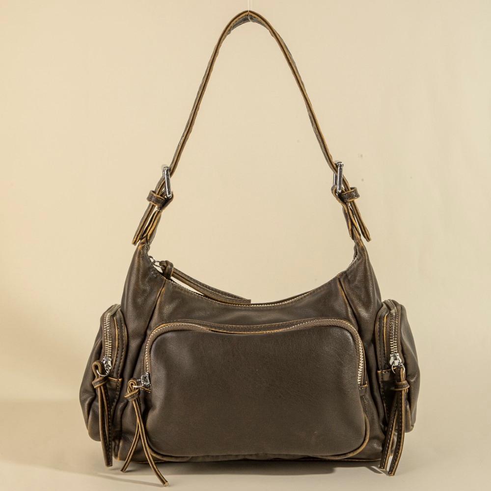 - The perfect way to complete any outfit, this shoulder bag incorporates a remarkable multi pocket leather design. Infuse elegance into your daily wardrobe with the versatile charm of this must-have shoulder bag. Available in BK, BR, GR. This item is sold in packs of 1.