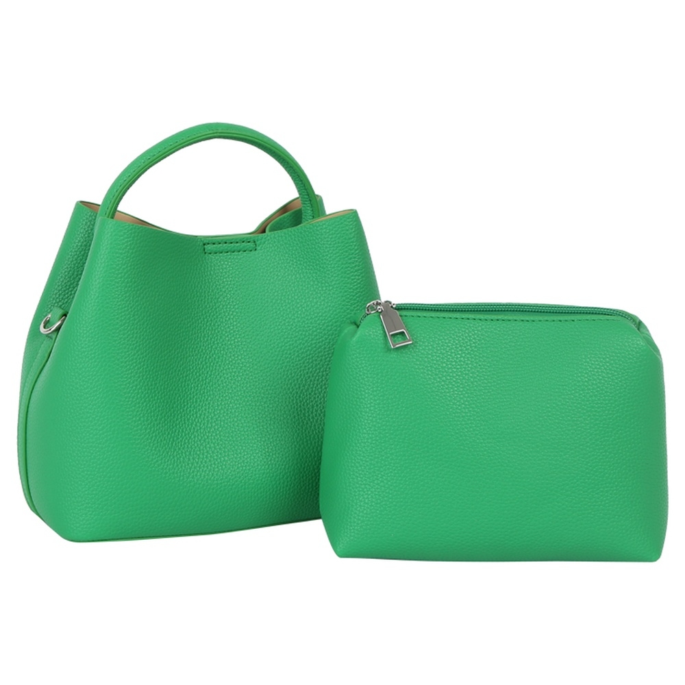 Stay on-trend and ahead of the fashion curve, this hand bag evokes a captivating pebbled 2 in 1 top handle satchel design. Elevate your fashion ensemble effortlessly with this versatile hand bag, a stylish choice for the modern trendsetter. Available in BG, BK, BR, GN, RD. This item is sold in packs of 1.