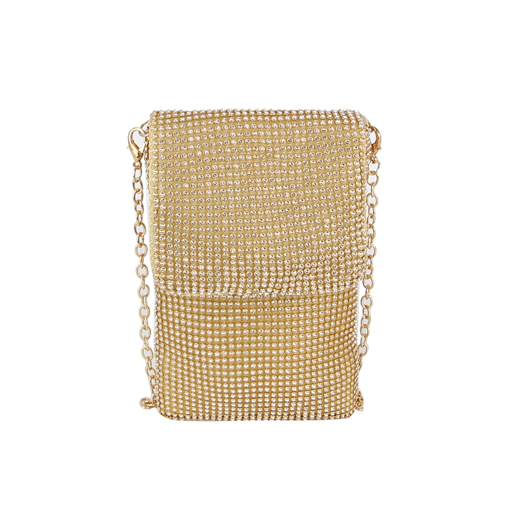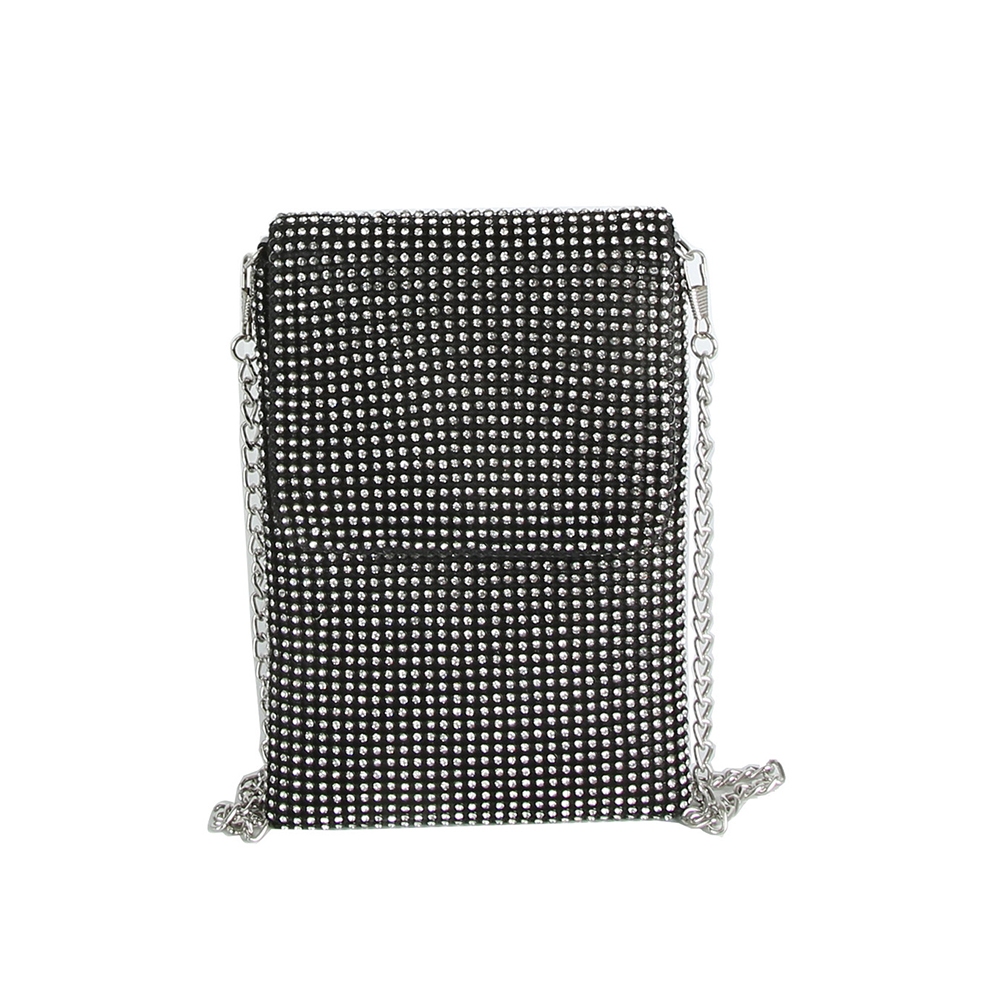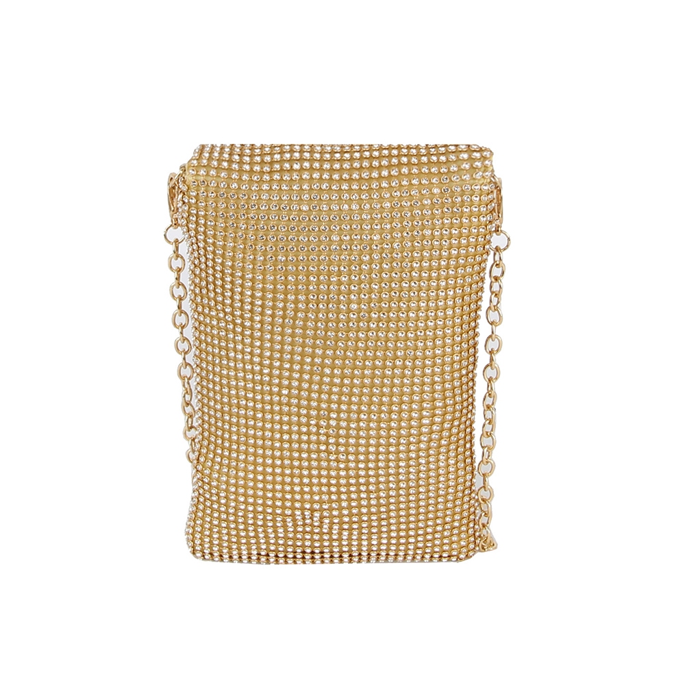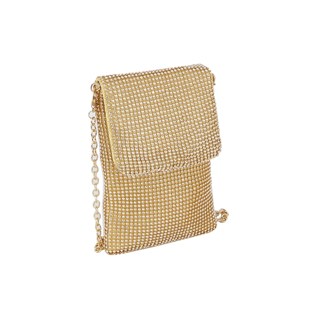 - Effortlessly elevate your outfit, this crossbody bag incorporates a flawless rhinestone metal mesh cell phone purse design. This item is ideal for those who want to add some personality to their wardrobe without being too bold. Available in BK1, GD, SL. This item is sold in packs of 1.