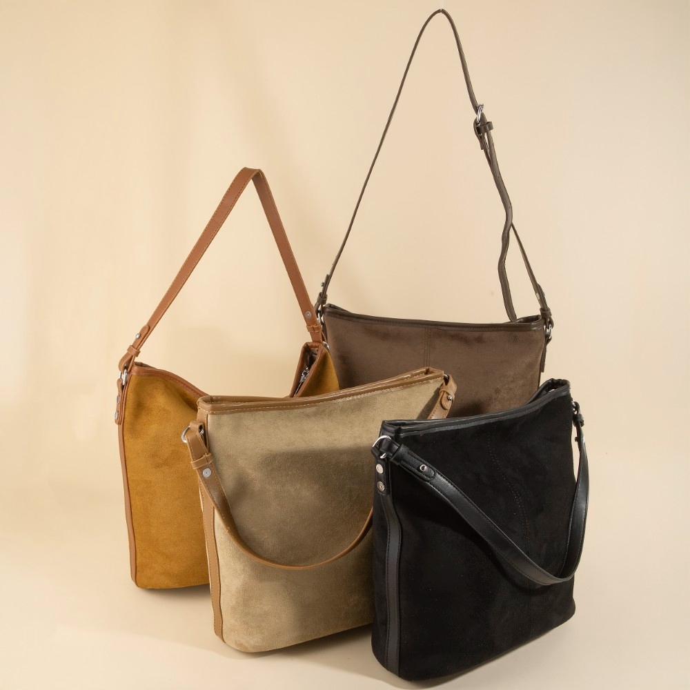 A unique and stylish piece that sets you apart, this shoulder bag highlights a special simple suede square design. A stylish shoulder bag that's perfect for complementing any outfit you wear. Available in BK, DBR, KA, LBR. This item is sold in packs of 12.