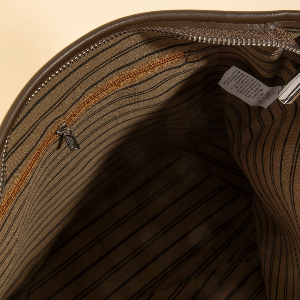 This shoulder bag is made with 90% Polyester 10% Alloy.