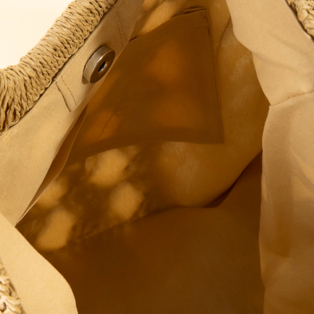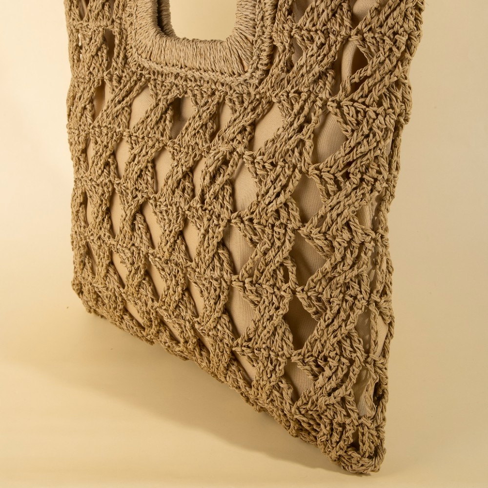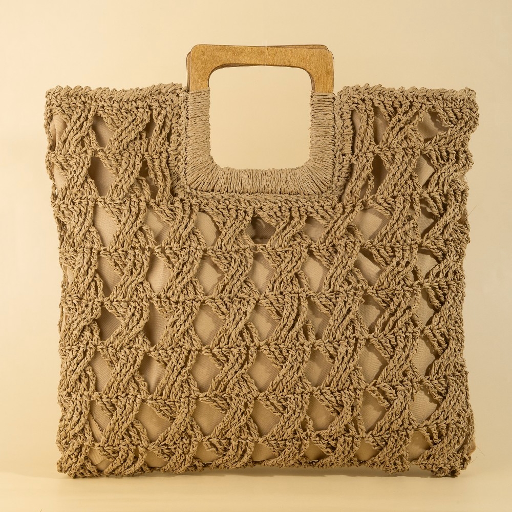 Effortlessly elevate your style, this tote bag reveals an intricate square straw braided design. The perfect way to complete any outfit, whether you're dressing up or keeping it casual. Available in IV, KA. This item is sold in packs of 12.