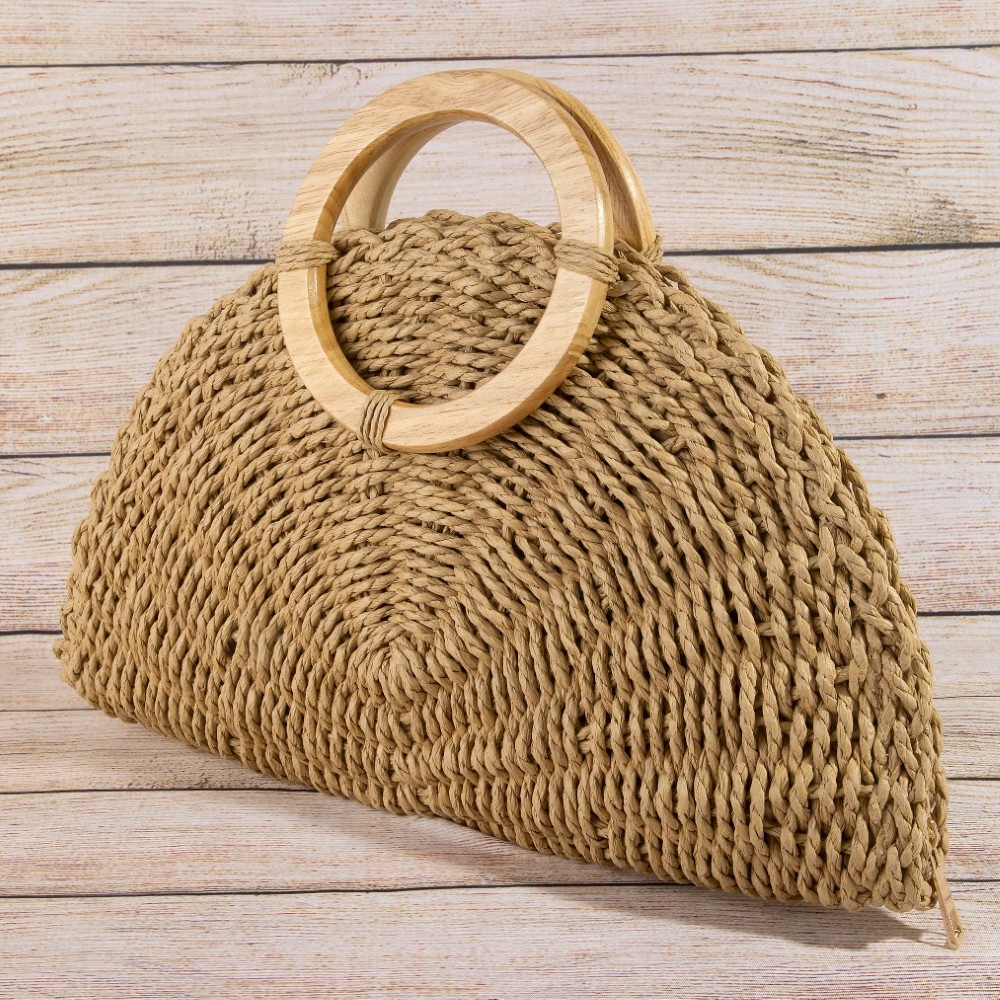 • Effortlessly elevate your style, this hand bag introduces an exceptional straw woven half moon round top handle bag design. Elevate your style effortlessly with this versatile hand bag, enhancing the appeal of any ensemble. Available in BEI, KH. This item is sold in packs of 1.