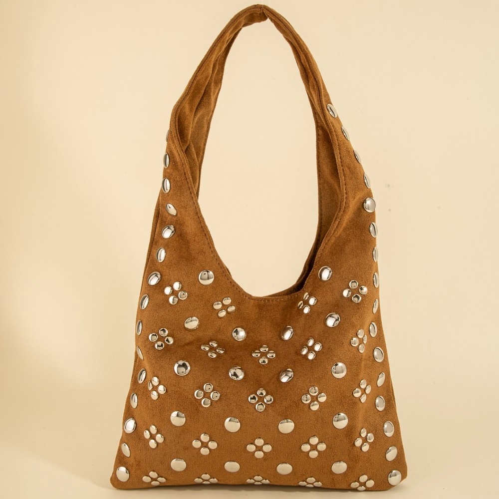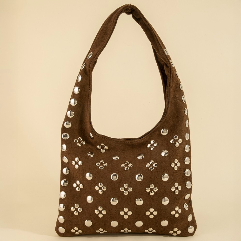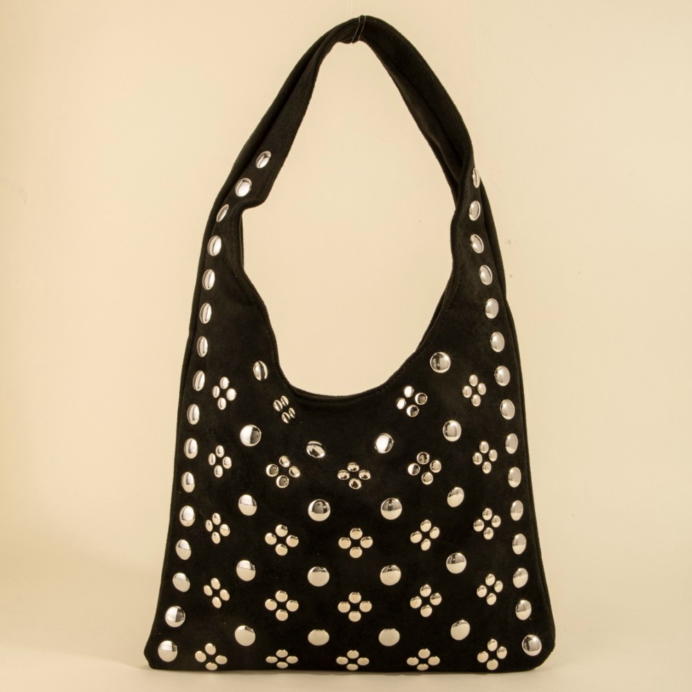 - Guaranteed to add a touch of glamour to any outfit, this shoulder bag contains a special studded rivets hobo design. Elevate your fashion ensemble effortlessly with this versatile shoulder bag, a stylish choice for the modern trendsetter. This item is sold in packs of 12.