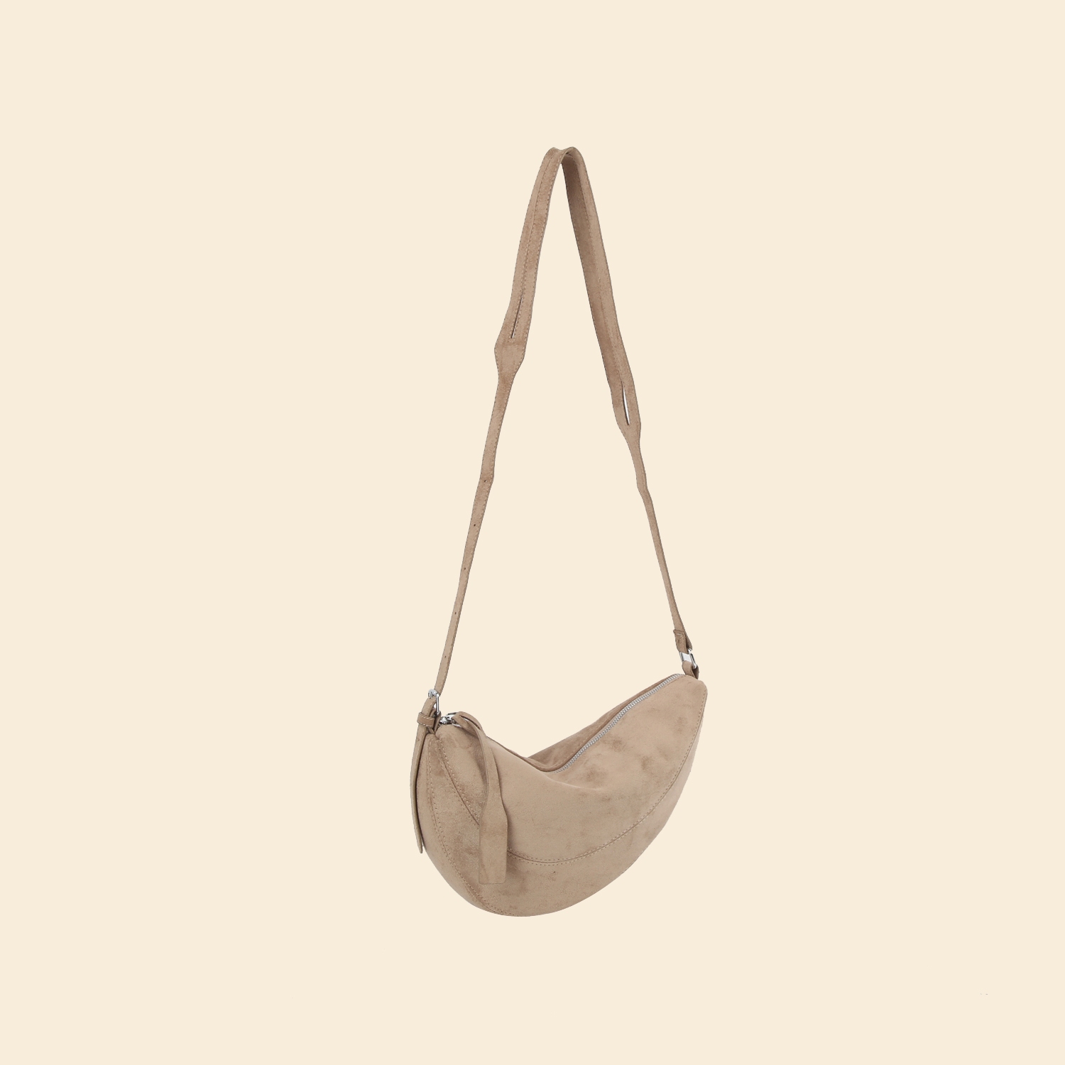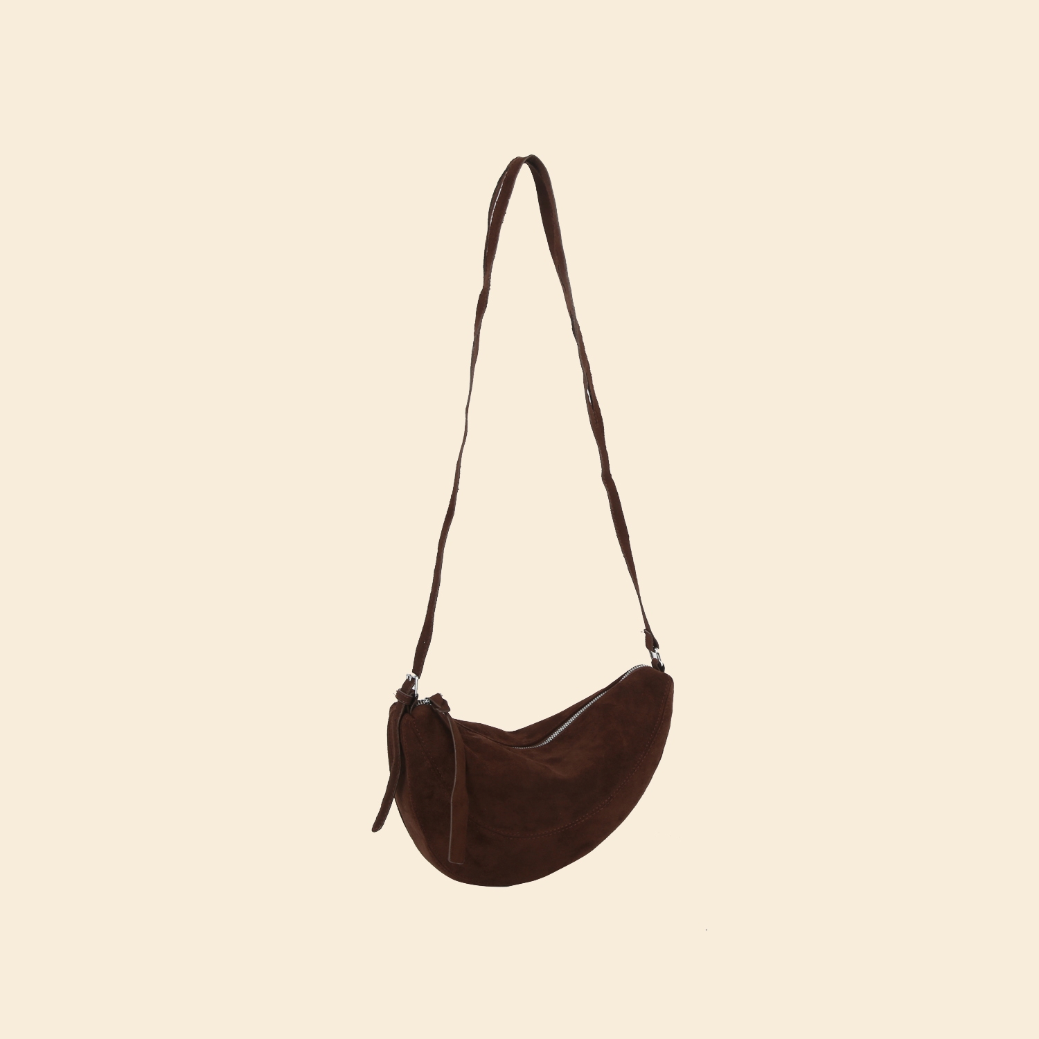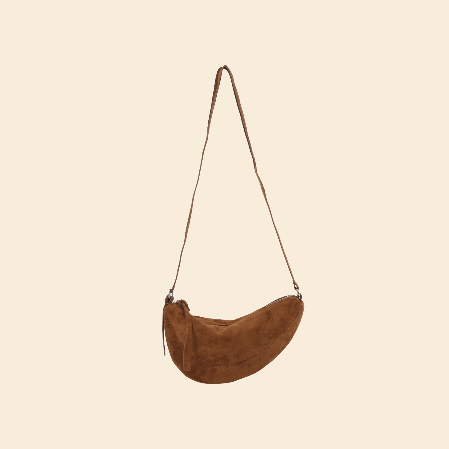 A versatile and stylish addition to any wardrobe, this shoulder bag brings a one-of-a-kind suede crescent panel design. Perfect for dressing up or down, this versatile shoulder bag adds a touch of sophistication to any look. Available in BK, BR, CF, MC. This item is sold in packs of 1.