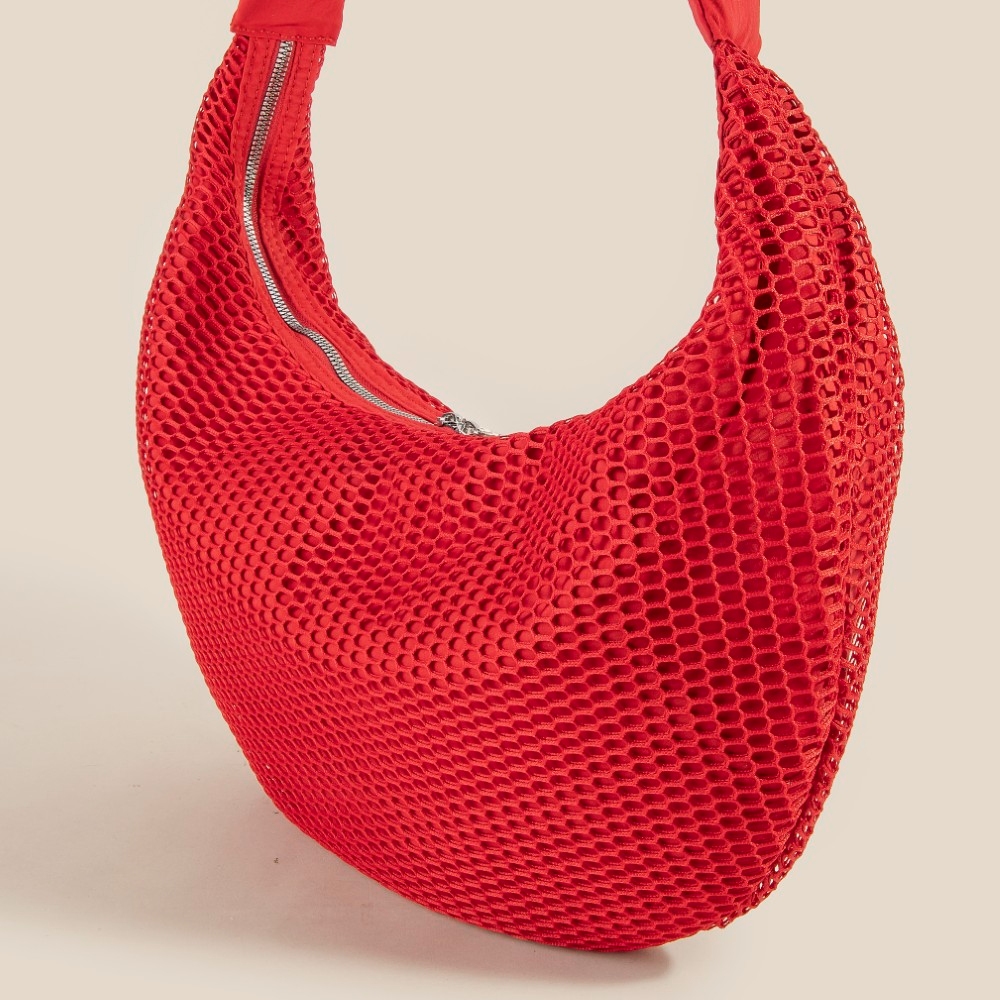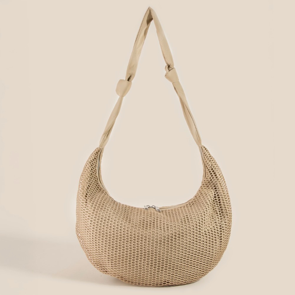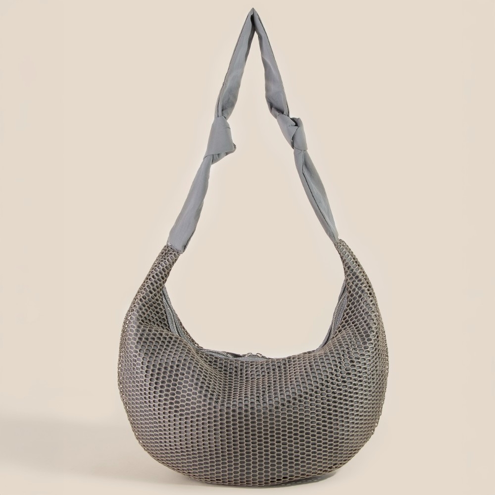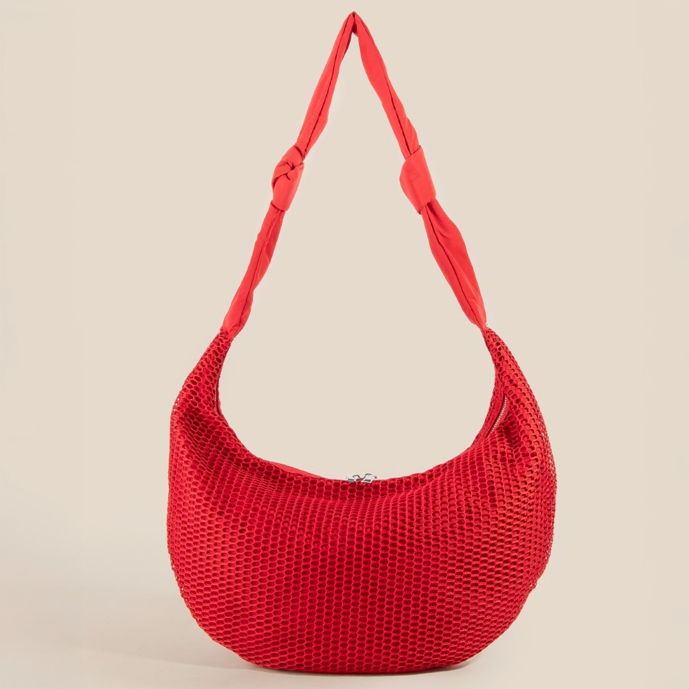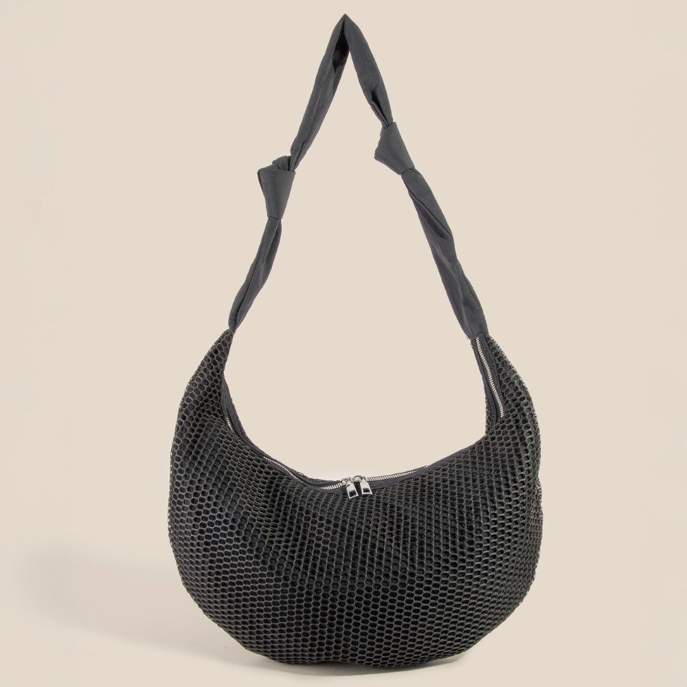 Stay on-trend and stand out from the crowd, this shoulder bag incorporates a flawless textured mesh knot design. Elevate your personal style effortlessly with this versatile shoulder bag, an essential component for a refined wardrobe. Available in BK, GR, KA, RD. This item is sold in packs of 1.