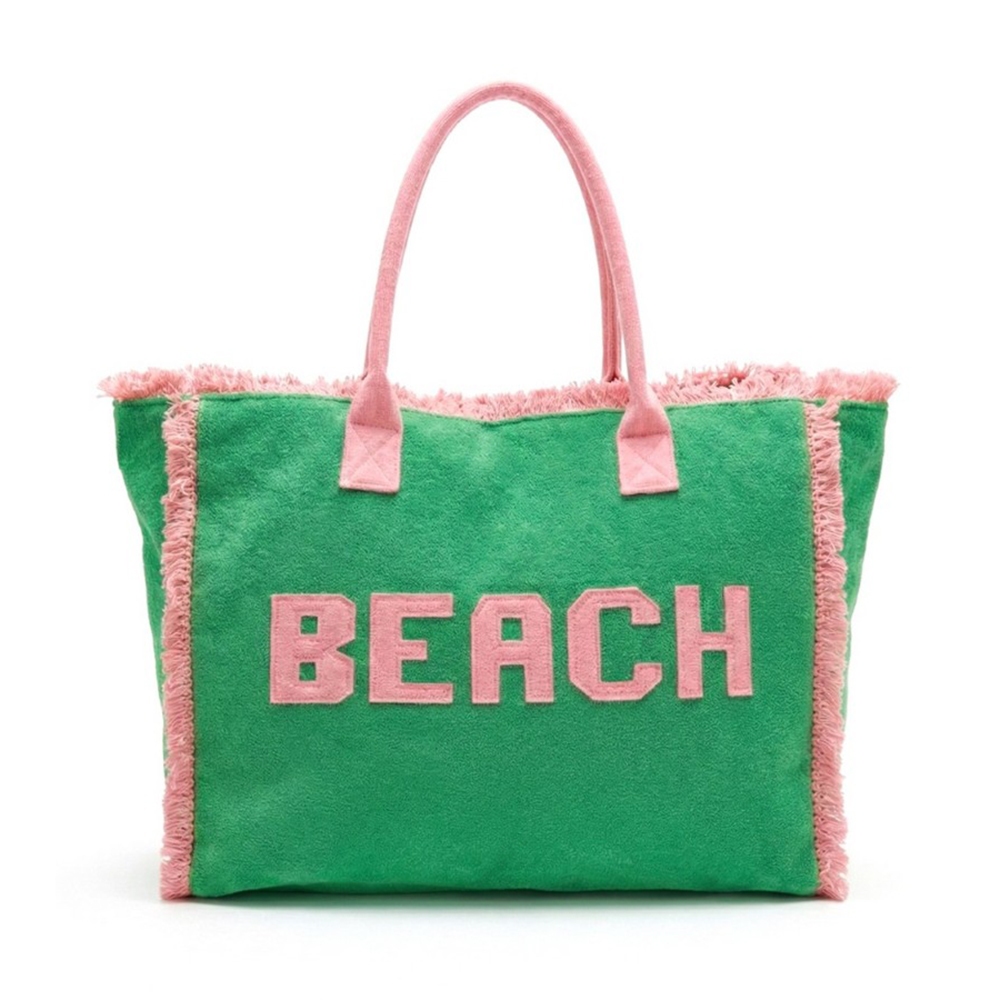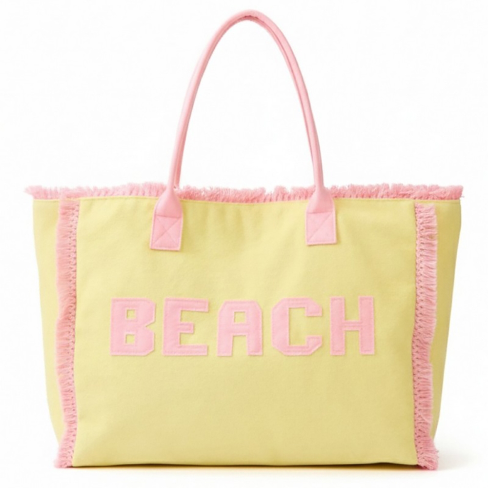 • Upgrade your tote bag game, this tote bag displays a unique beach print fringe design. Add a touch of glamour to your wardrobe with this versatile tote bag, perfect for enhancing the elegance of any look. Available in GN, MT, PK, YE. This item is sold in packs of 1.