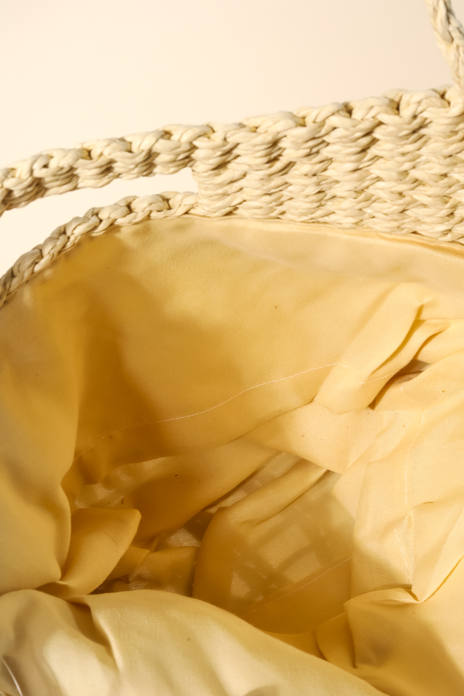 • This piece is both timeless and on-trend, this tote bag contains a special braided semi circle design. This tote bag is ideal for both casual and formal events, adding a touch of sophistication to any outfit. Available in IV, TA. This item is sold in packs of 1.