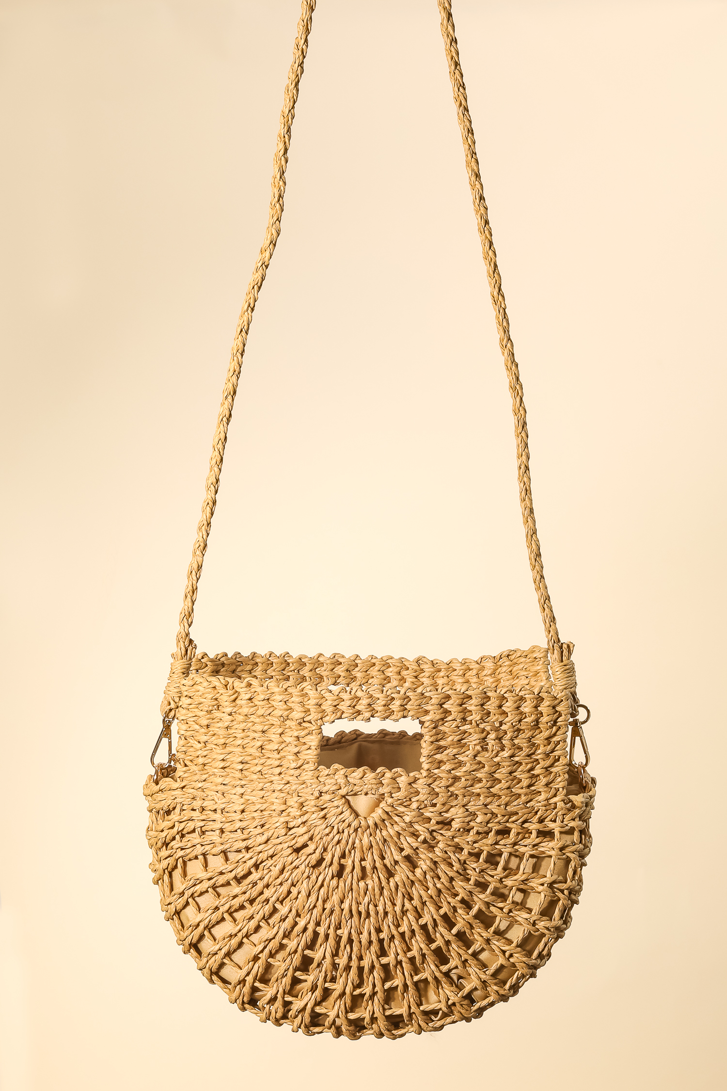 Multi Tone Straw Half Moon Round Handle Tote Bag