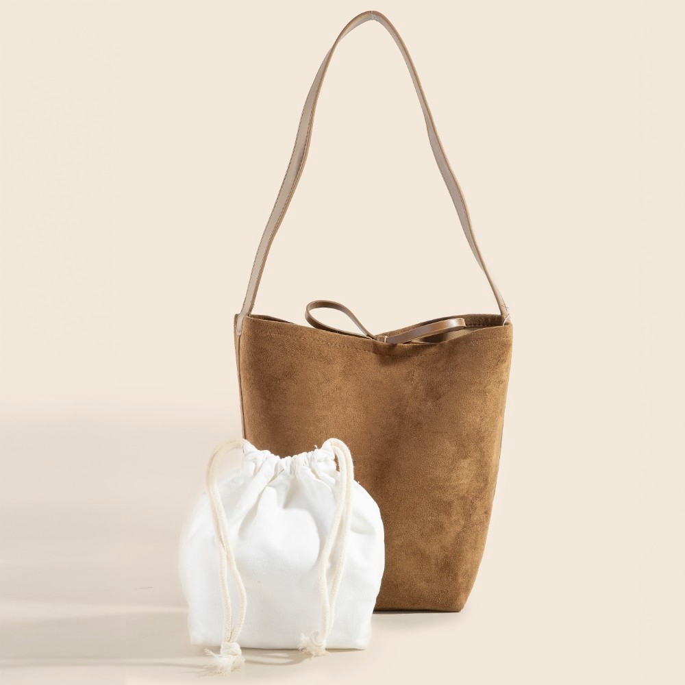 • This piece is the perfect way to add some glamour to your look, this tote bag embodies a sophisticated inner pouch faux suede design. This tote bag is the perfect finishing touch to any outfit, adding a touch of sophistication and glamour. This item is sold in packs of 1.