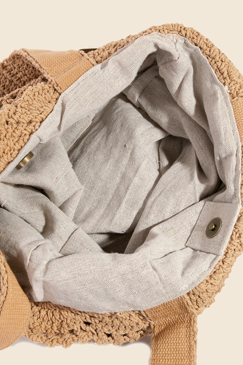 Straw Braided Half Moon Round Handle Tote Bag