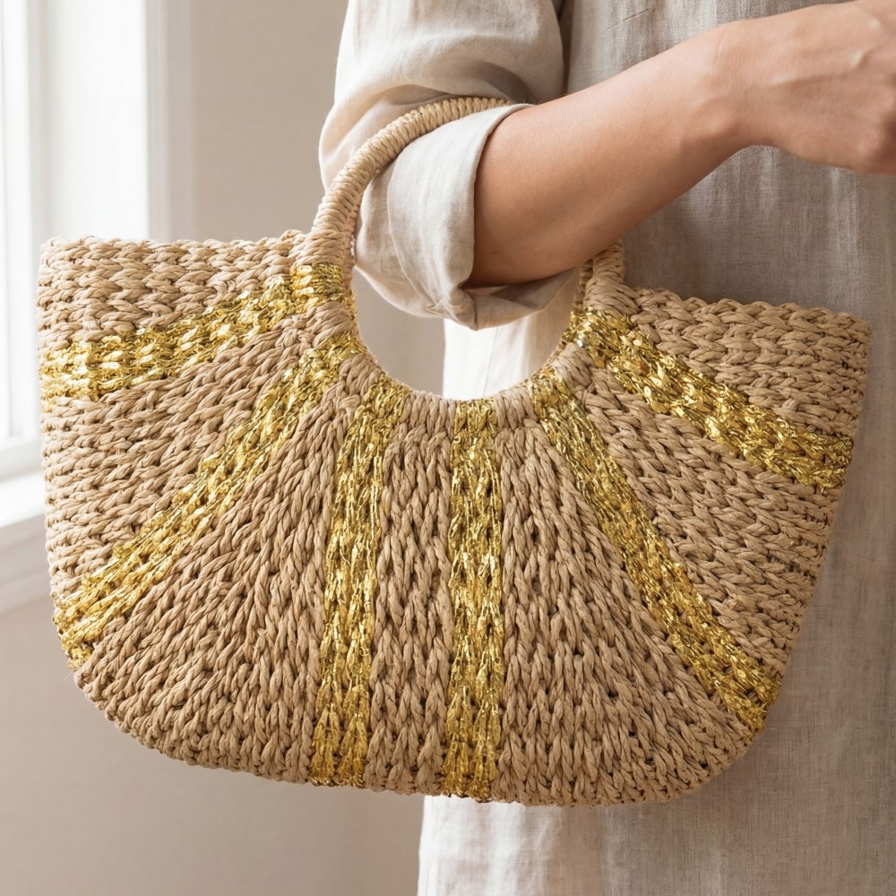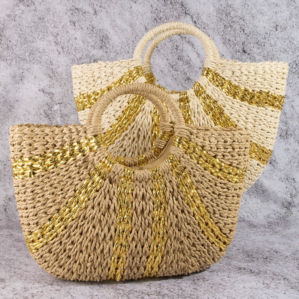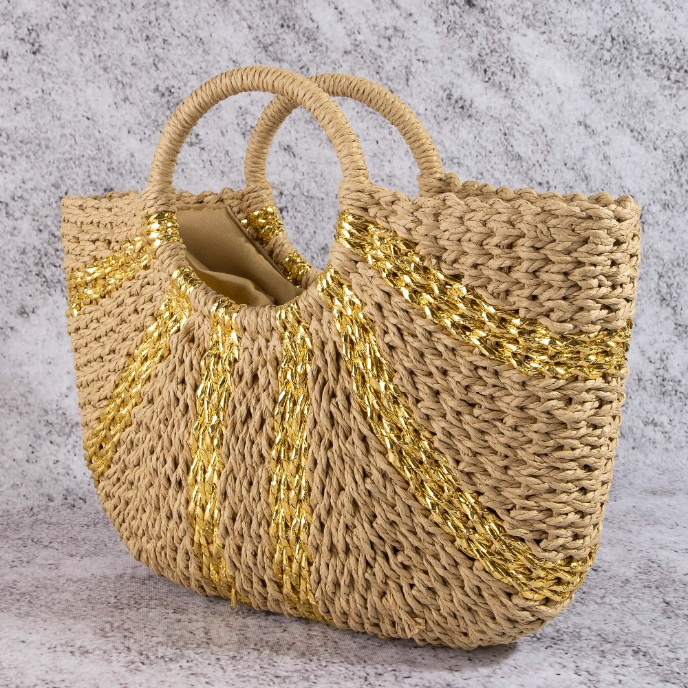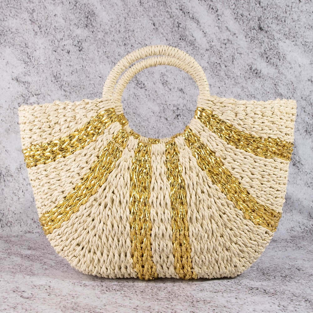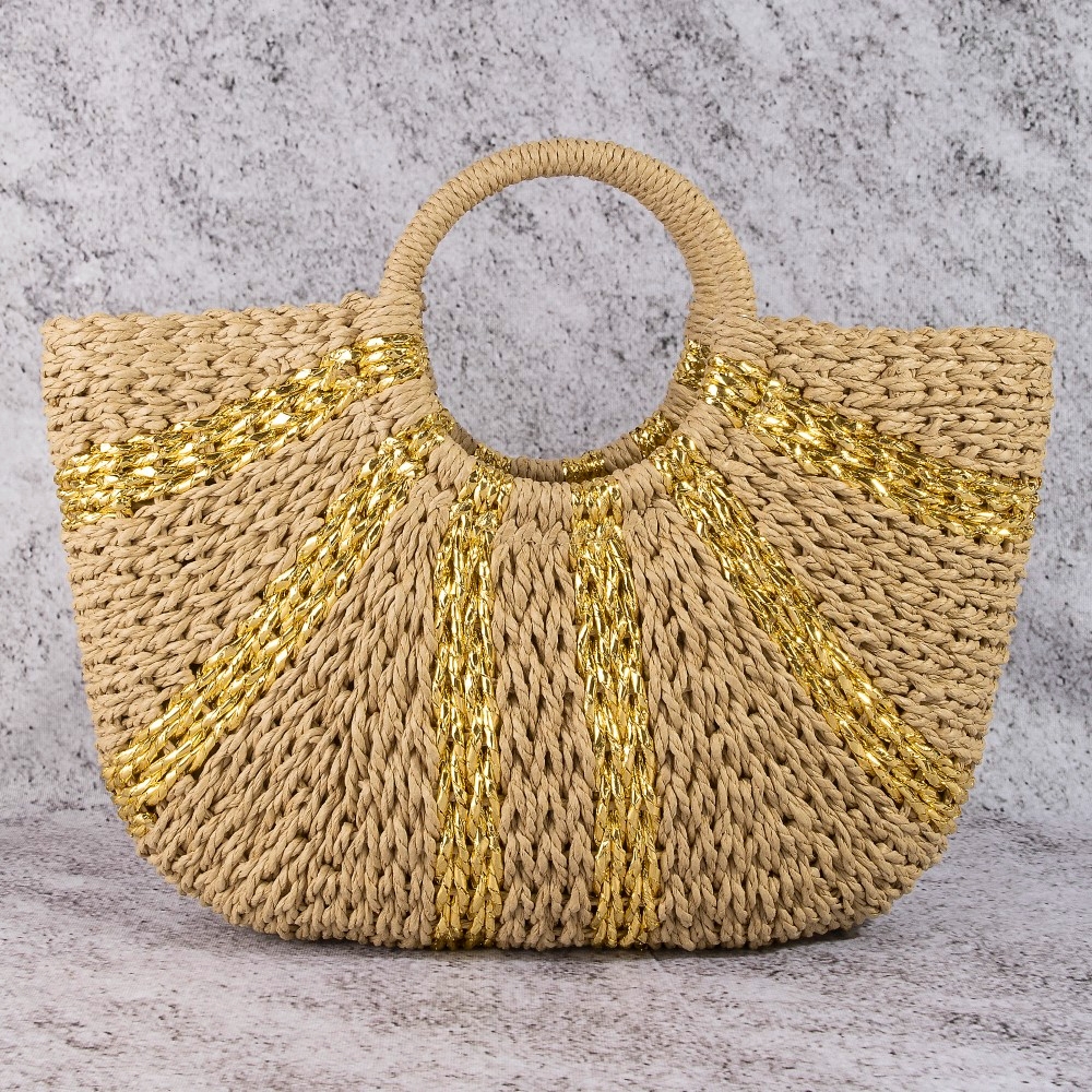 • Sleek, modern, and always stylish, this tote bag highlights a special gold accent straw weave half moon design. Upgrade your fashion game with this versatile tote bag, a timeless addition that complements any outfit seamlessly. Available in BEI, KH. This item is sold in packs of 1.