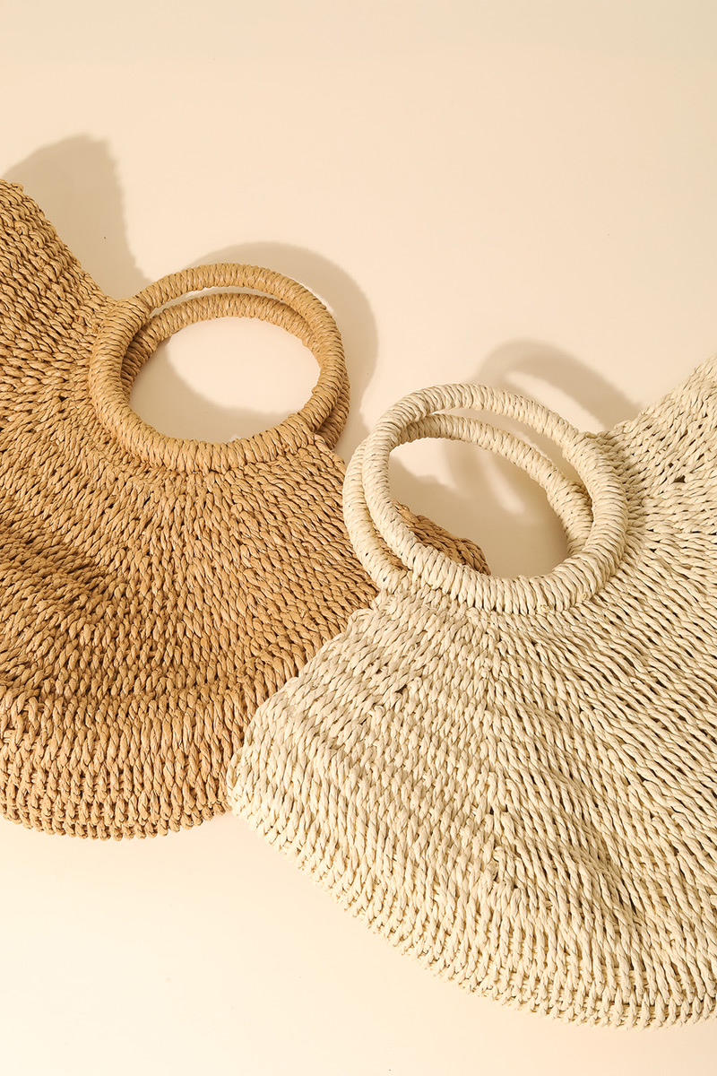 Straw Braided Half Moon Round Handle Tote Bag