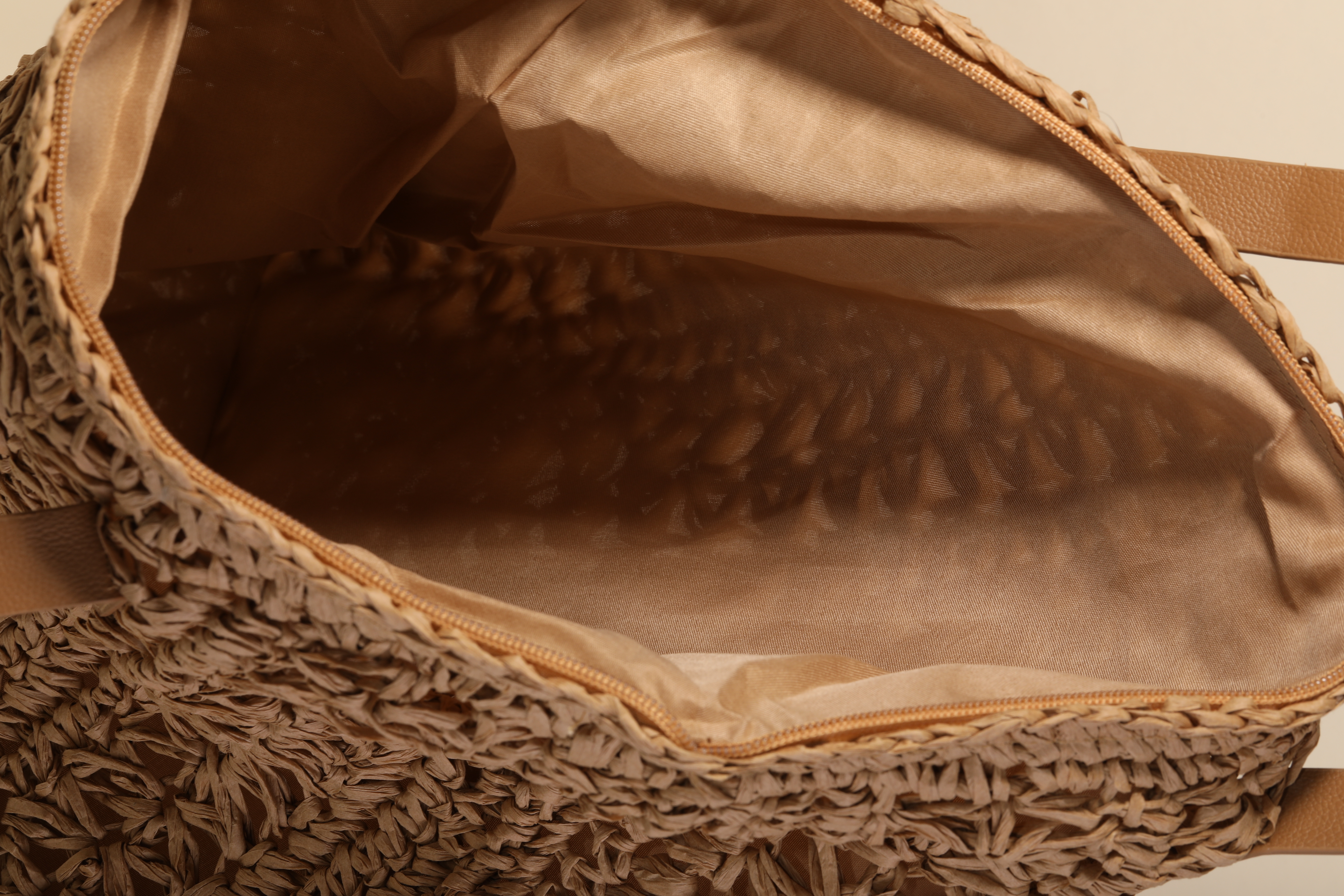 Straw Braided Half Moon Round Handle Tote Bag