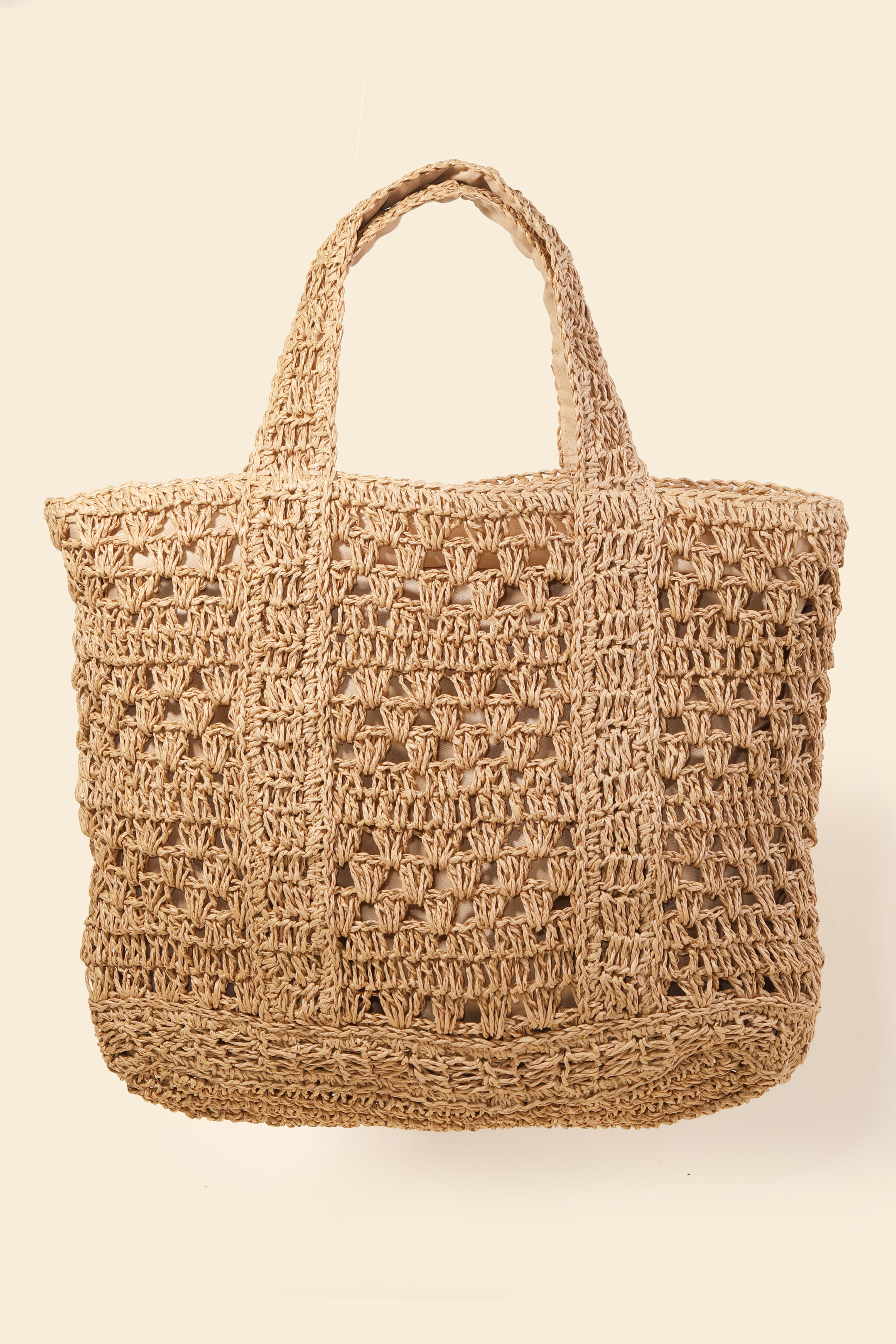 Woven Lattice Straw Tote Bag