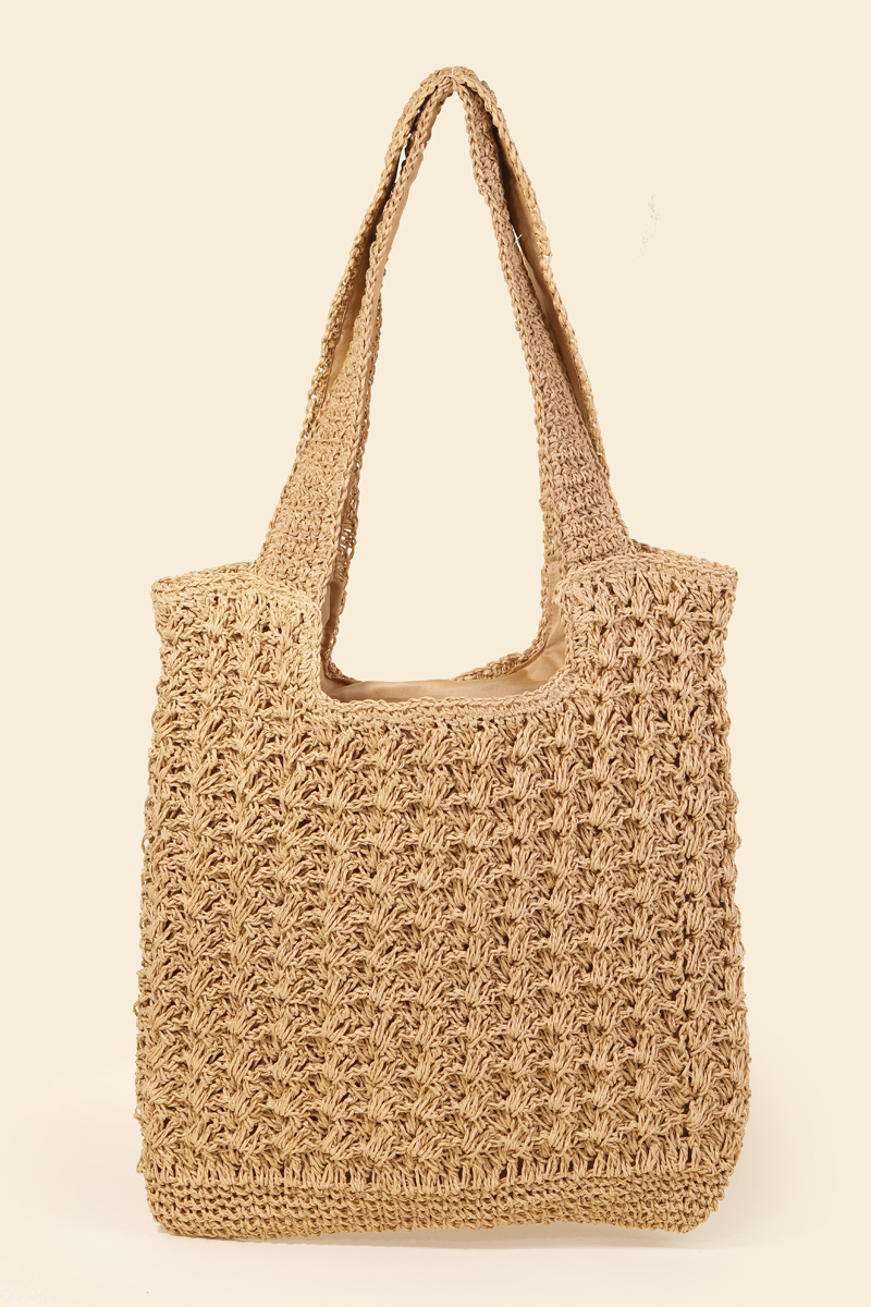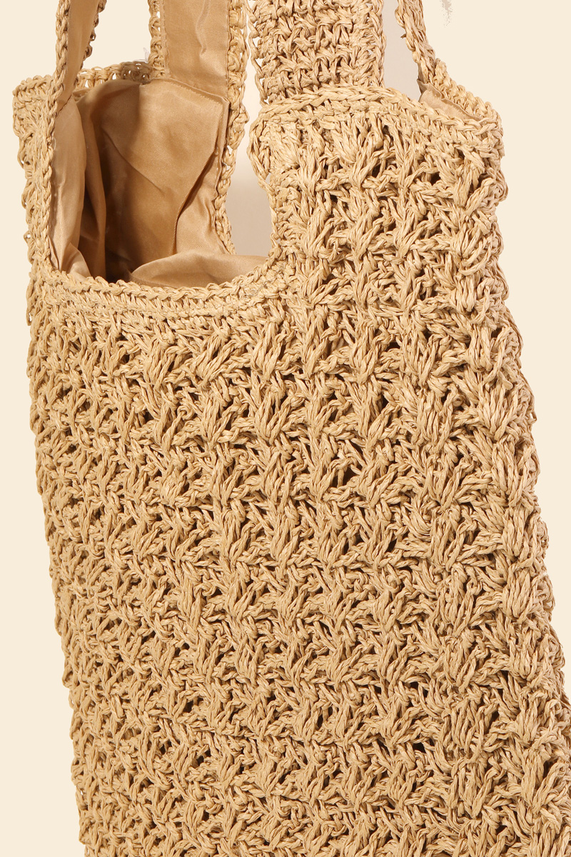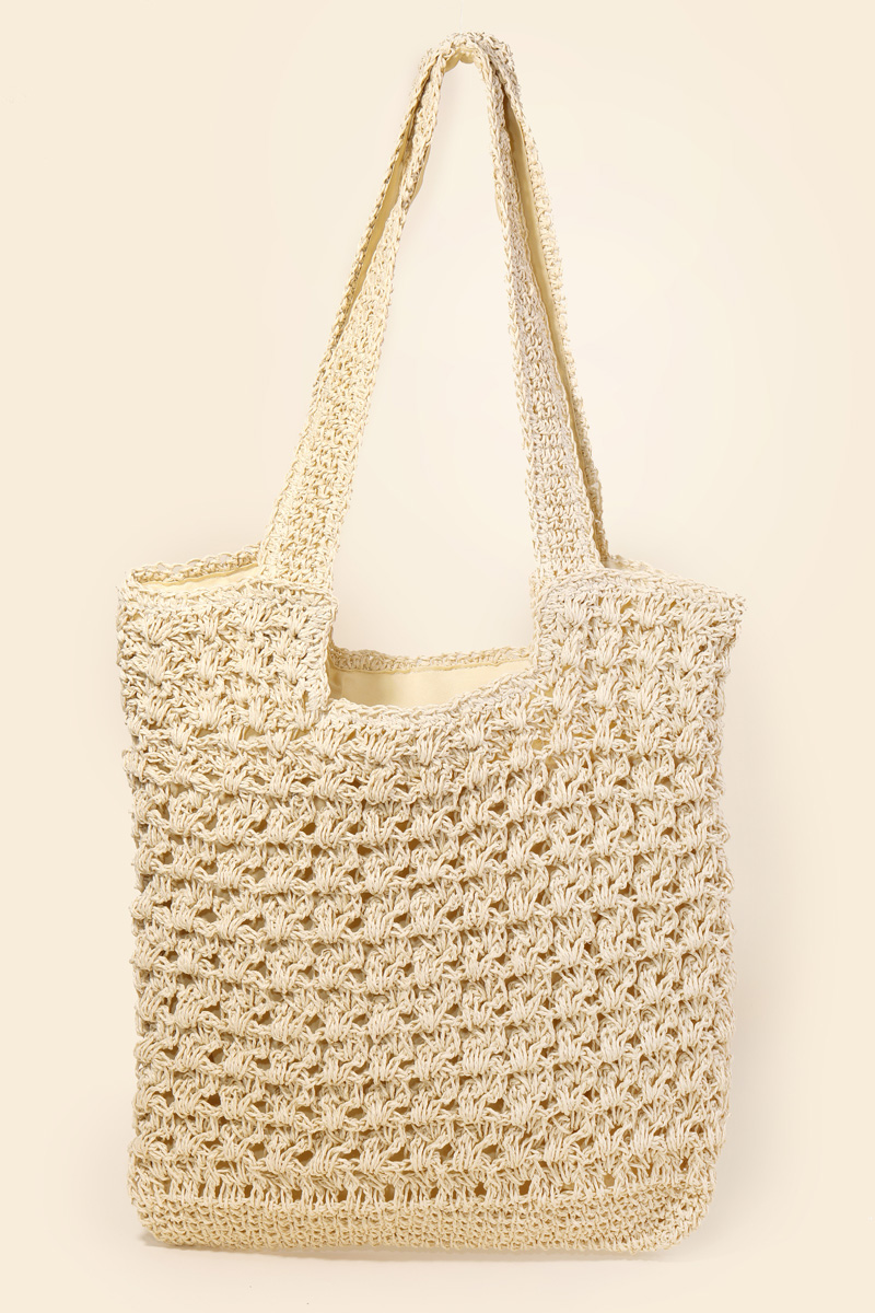 • Effortlessly elevate your outfit with this tote bag carries a charming intricate straw knit tote bag design. It also features inner pocket and a zipper closure. This versatile accessory adds a touch of elegance to any outfit. Available in IV and KA. This item is sold in packs of 1.