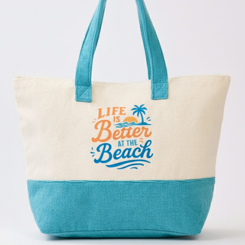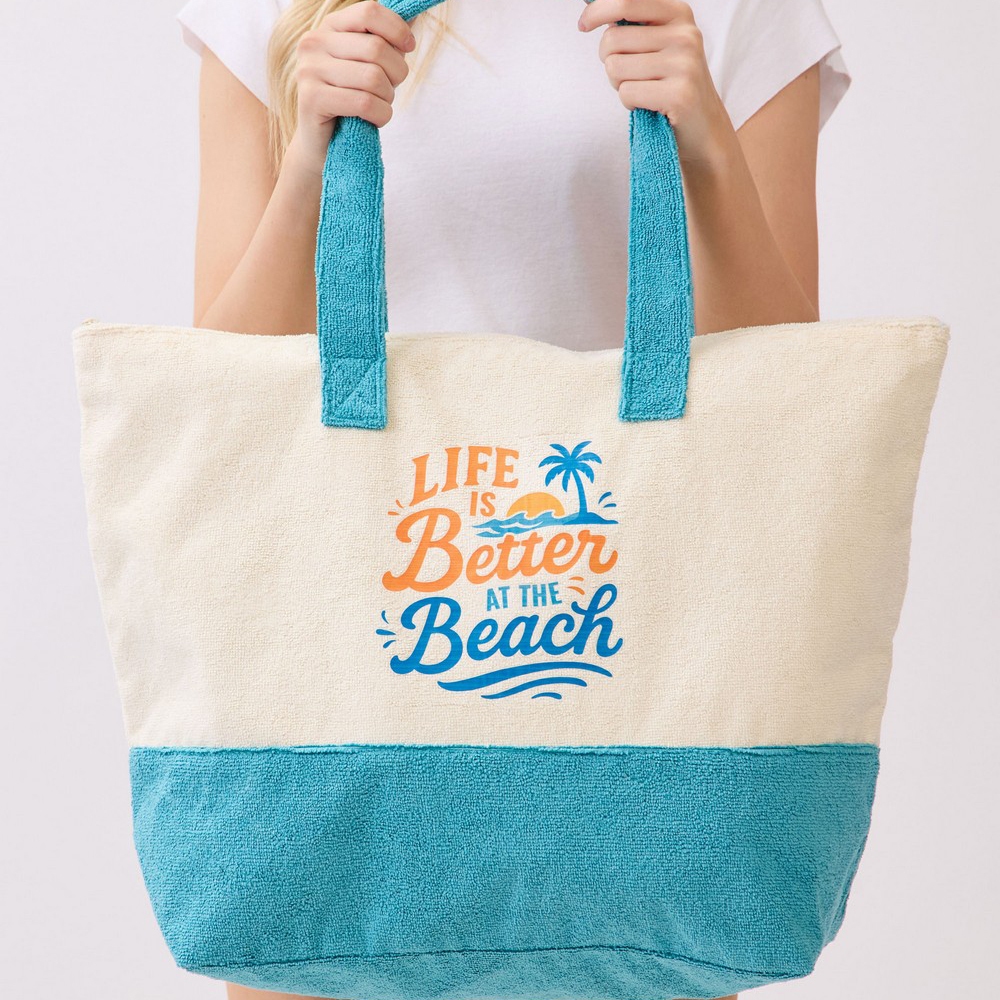 • A true work of art, this tote bag presents a striking life is better at the beach terry design. A perfect addition to your wardrobe that effortlessly enhances your style. Available in NO COLOR. This item is sold in packs of 1.