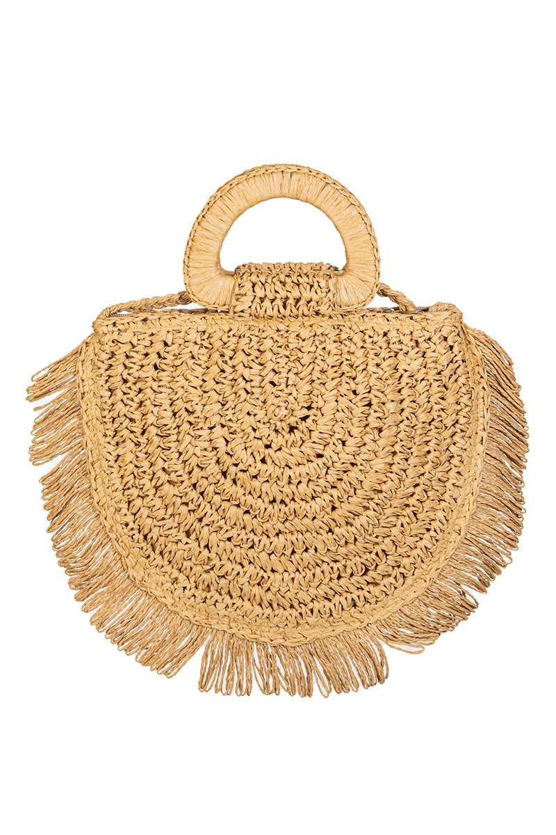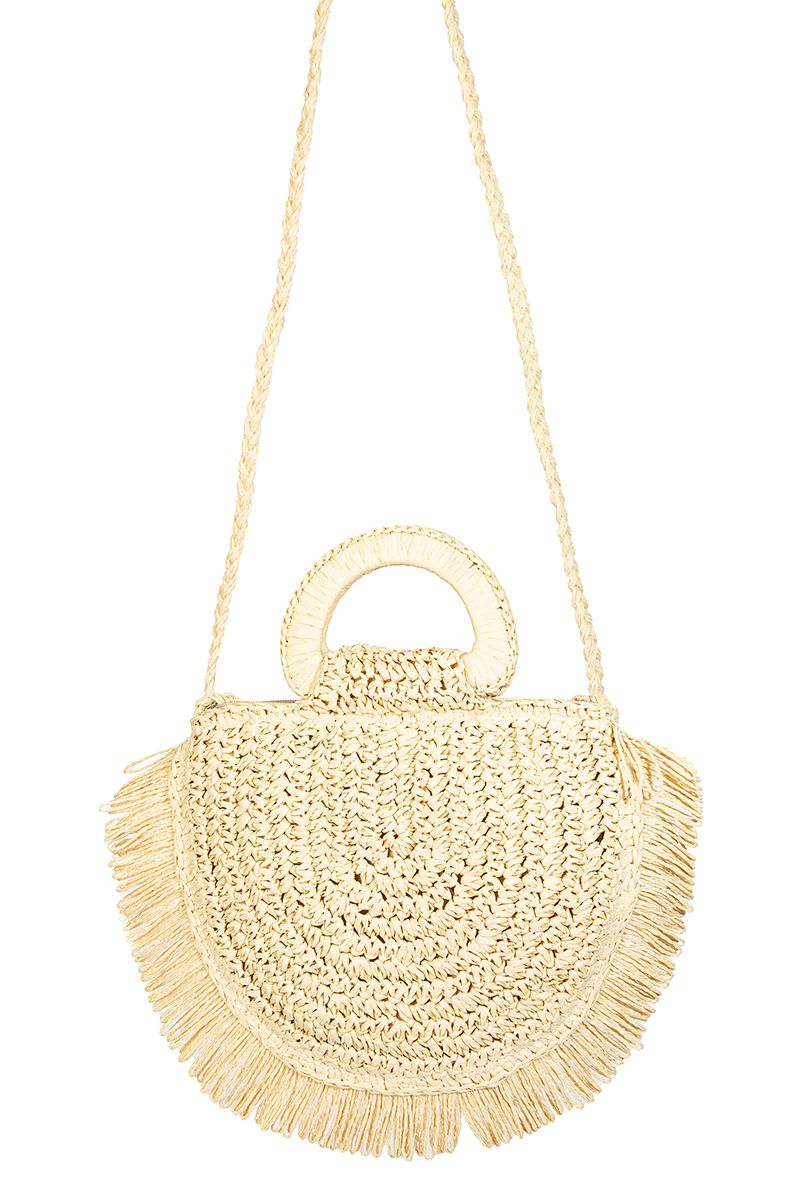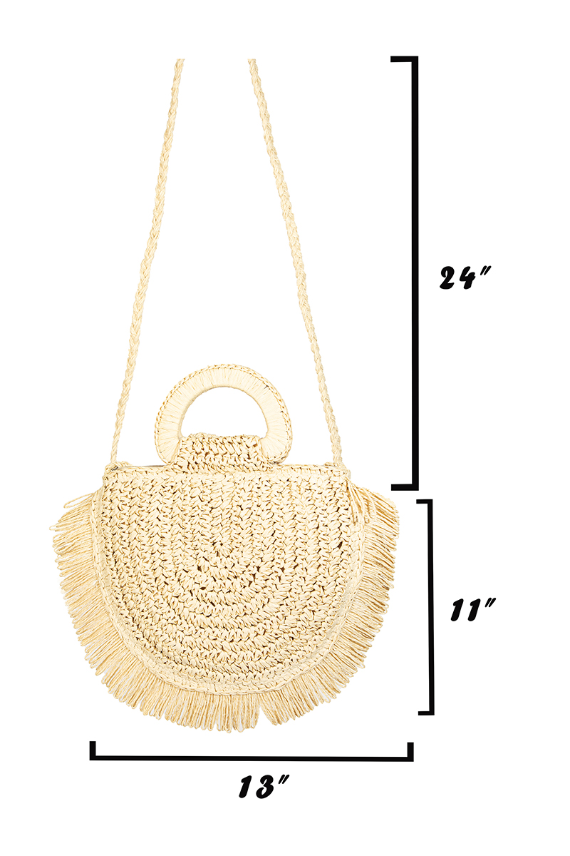 Semicircle Straw Braided Fringe Beach Bag