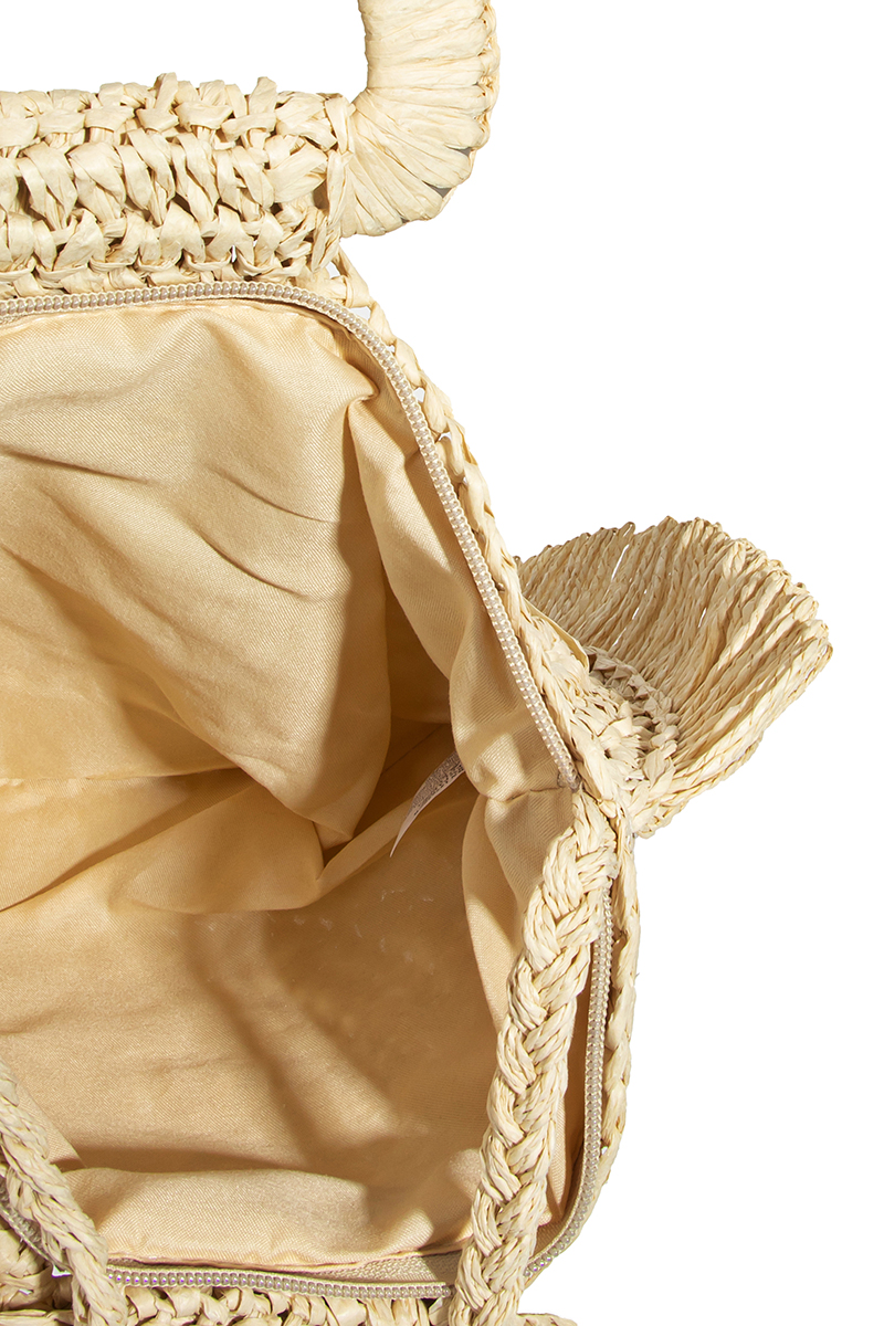 This new popular trending tote bag has a beautiful straw braided beach tote bag design. Perfect for the winter!