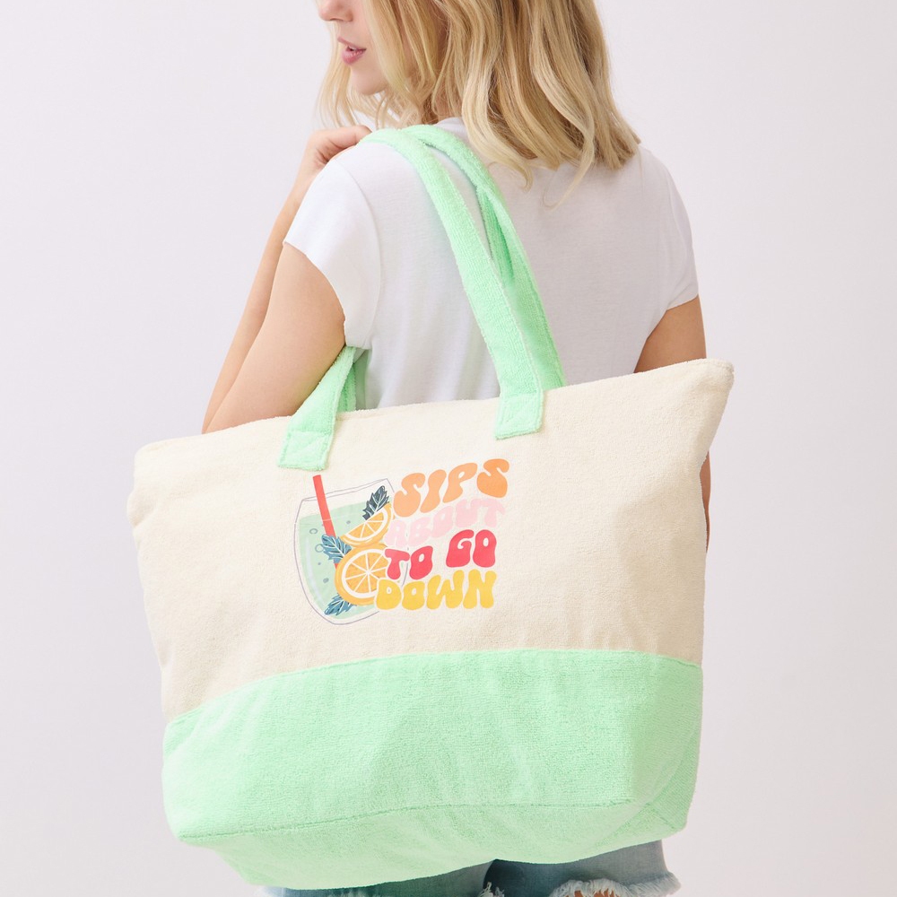 • A classic design with a contemporary twist, this tote bag exudes a refined sips about to go down terry design. Take your style to the next level by incorporating this versatile tote bag, a key element in achieving a polished look. Available in NO COLOR. This item is sold in packs of 1.