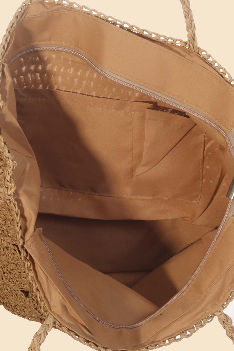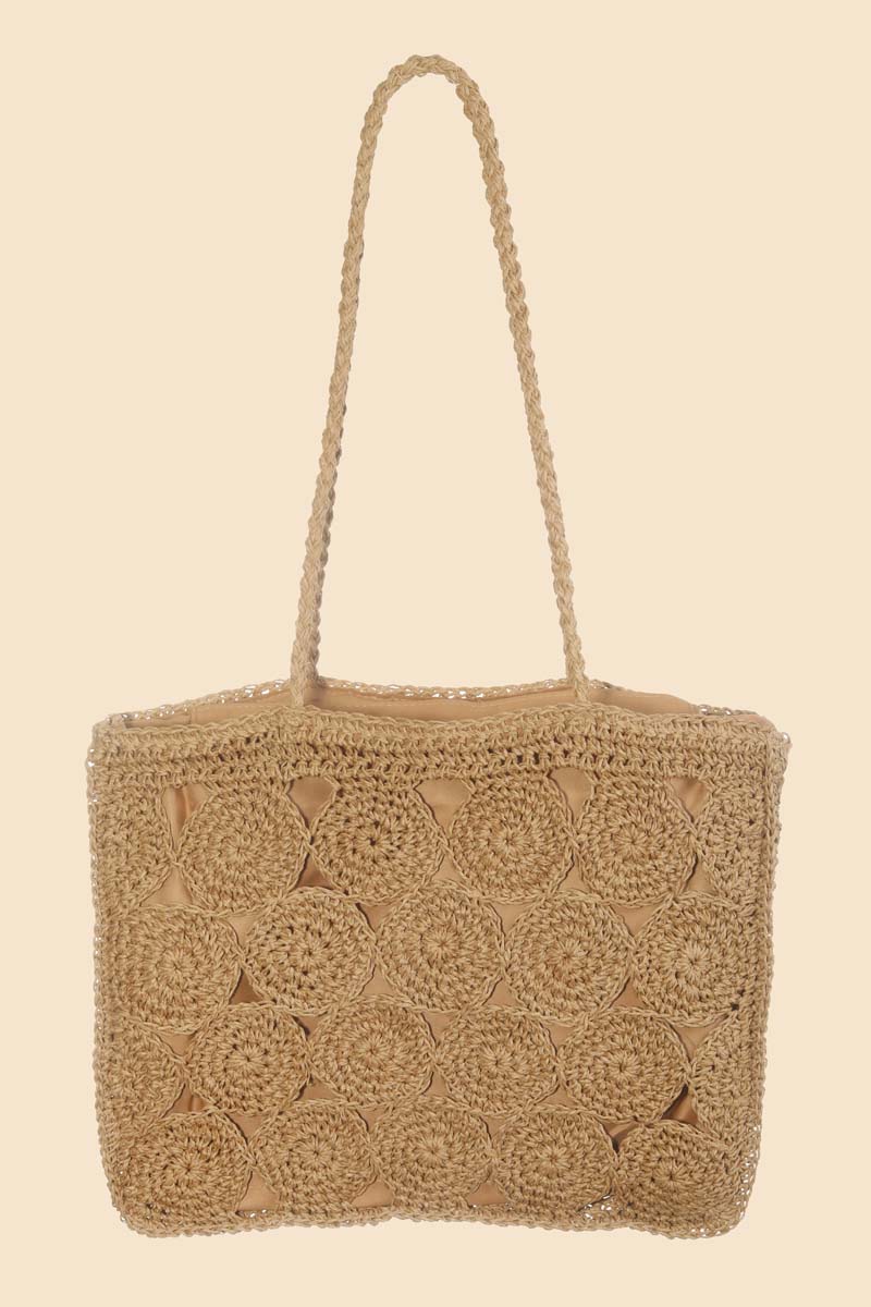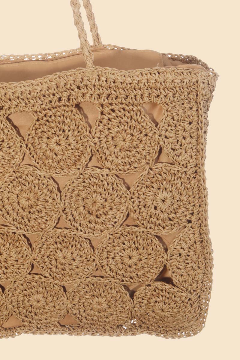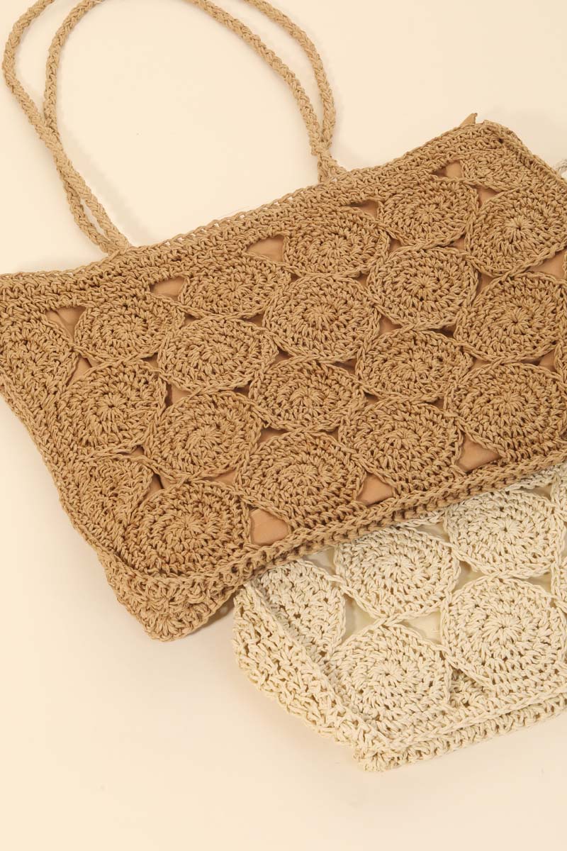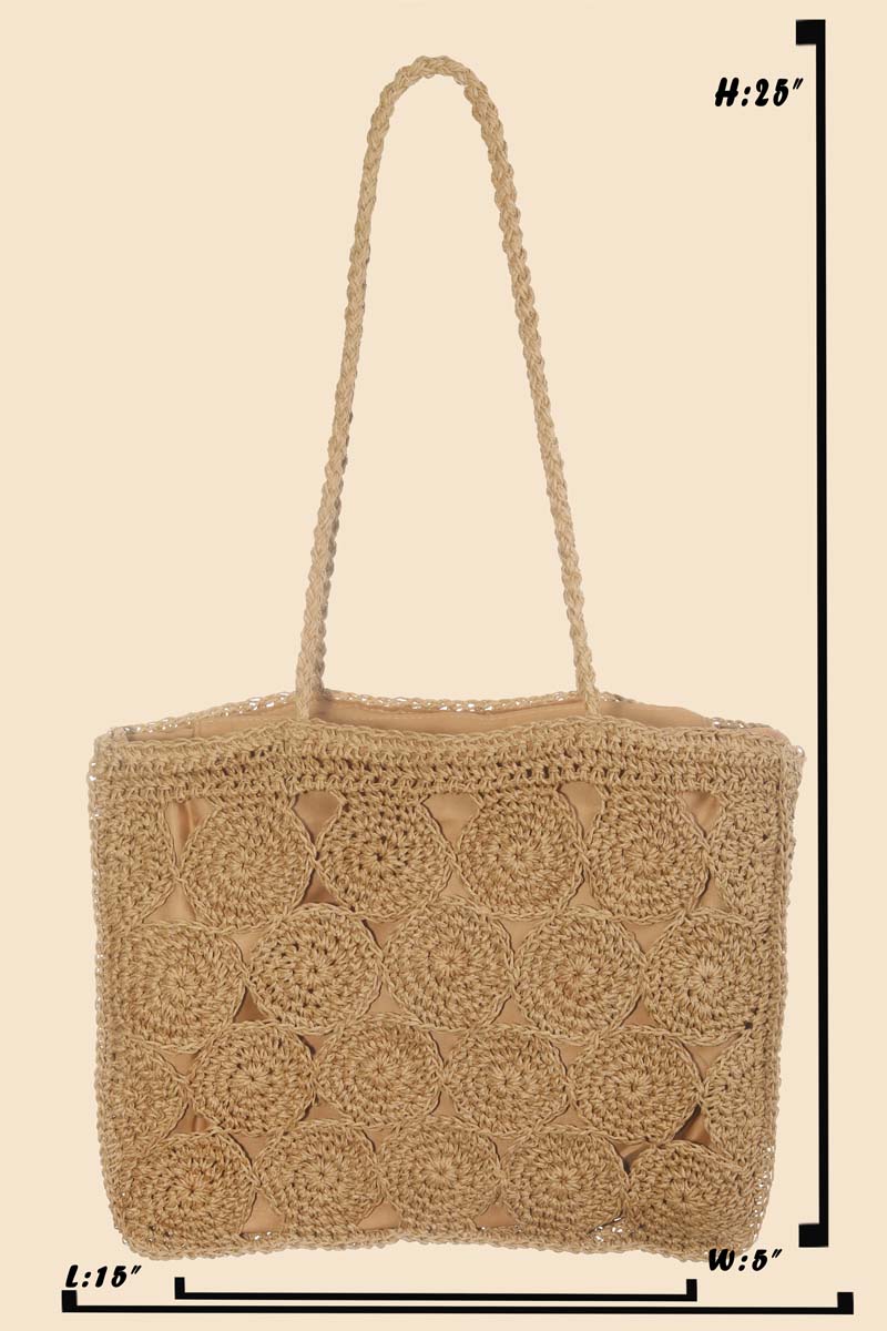 This is a must have tote bag is made with a square braided pattern tote bag design. This matches almost any outfit you have planned! This item is sold in packs of 1.