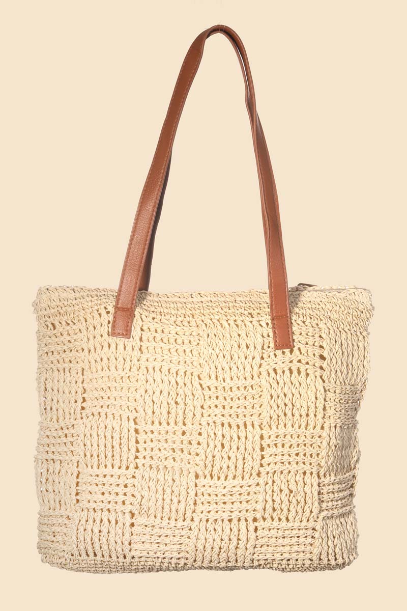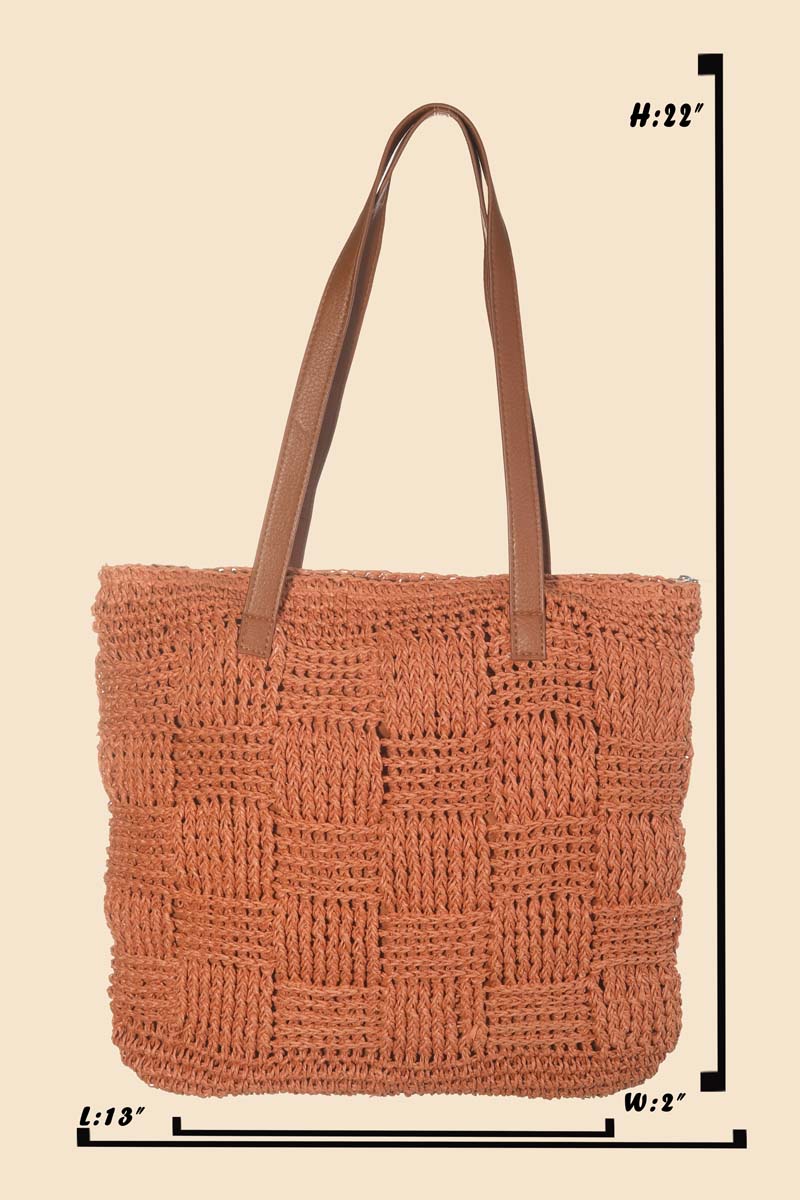 This is a soon to be trending must have tote bag that features a beautiful straw braided basket weave tote bag design. Perfect for any occasion you have planned! Available in IV, KA and OR. This item is sold in packs of 1.
